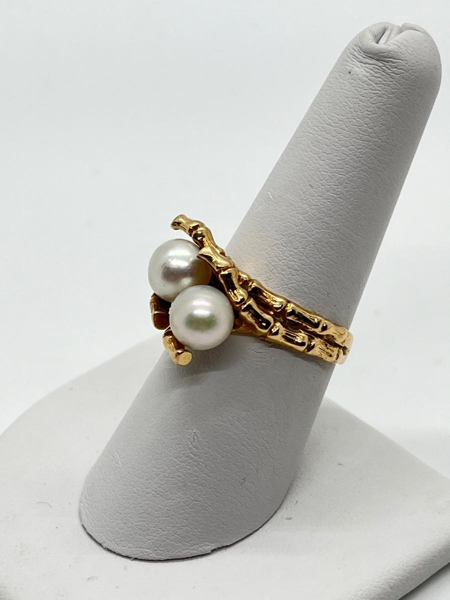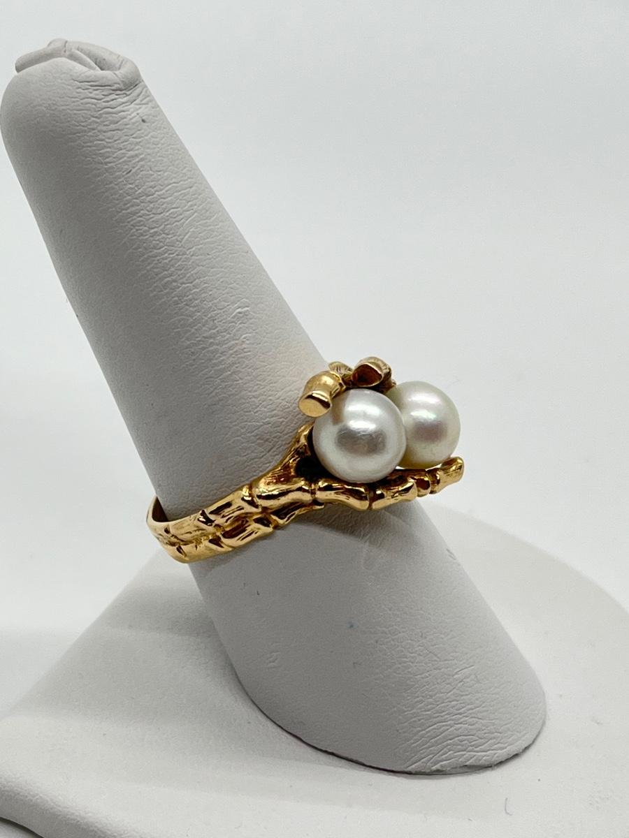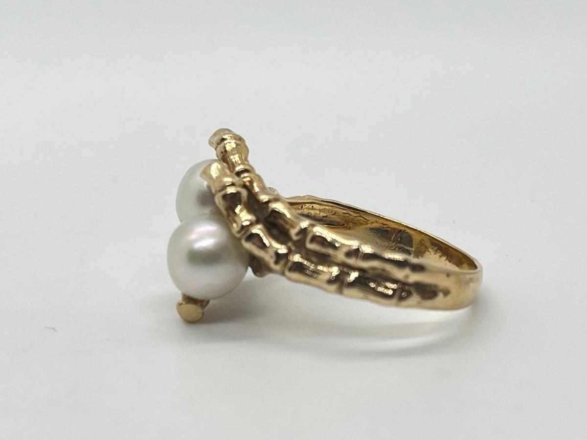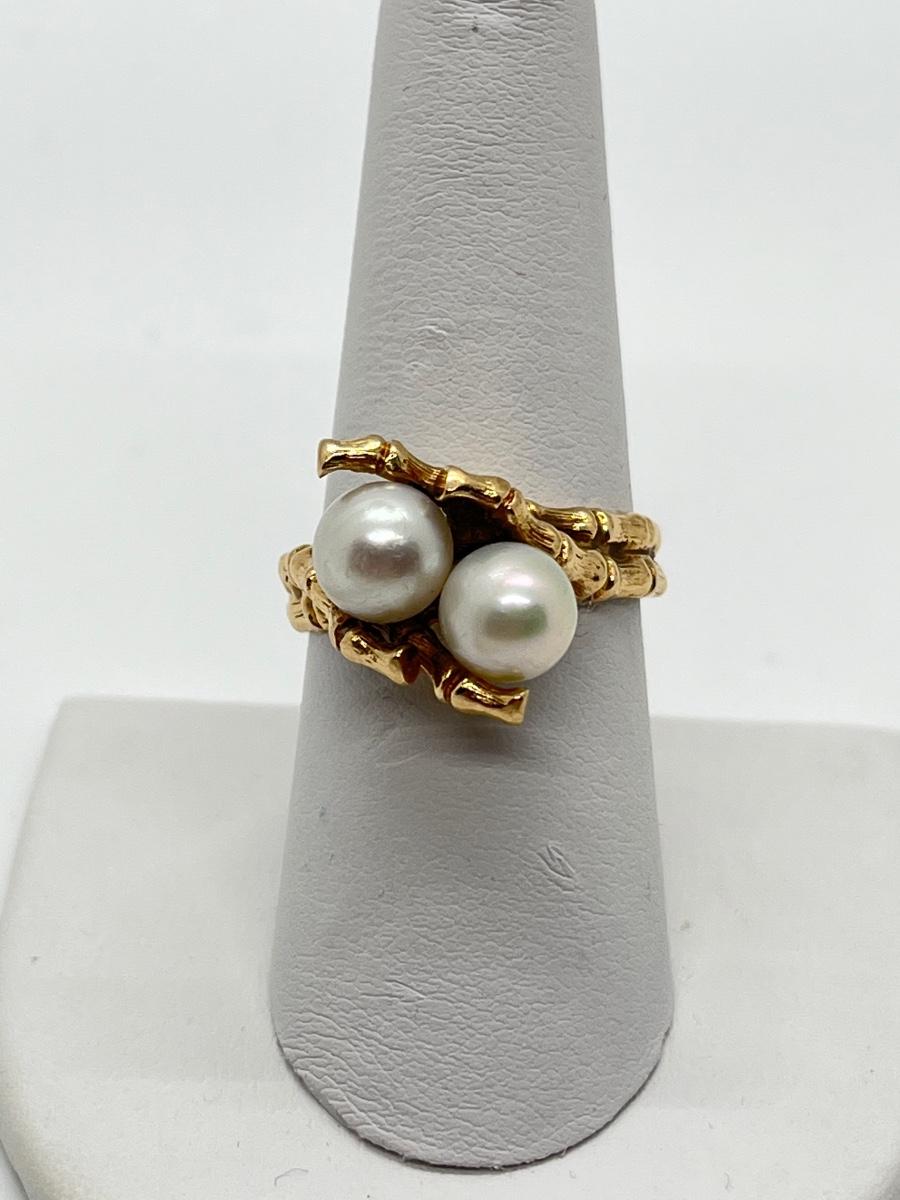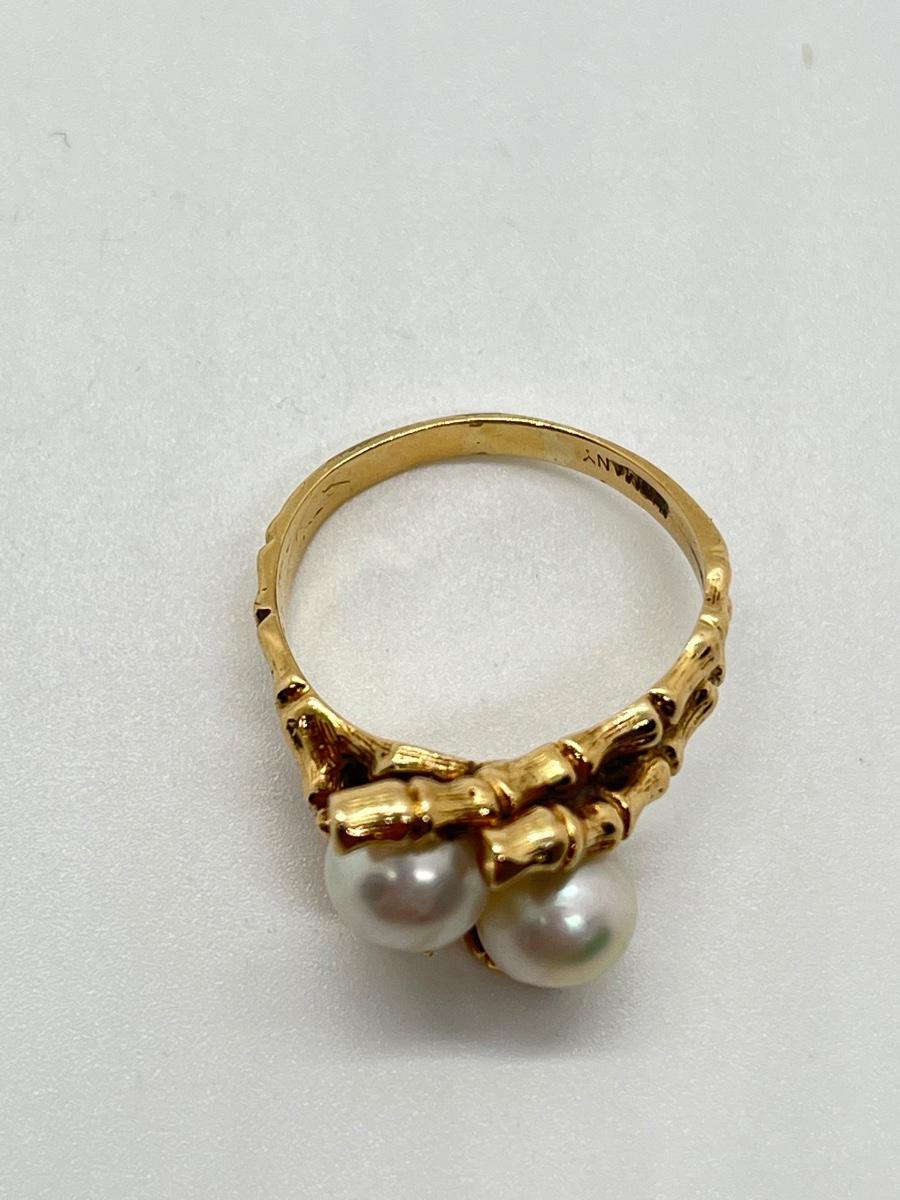 LOT 61: 14K Gold Double Pearl Ring - Size 9 - 6.1 gtw - Marked Germany