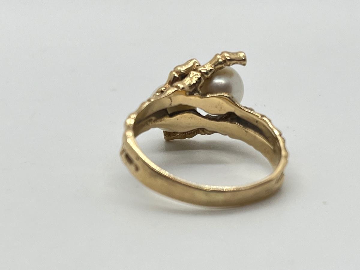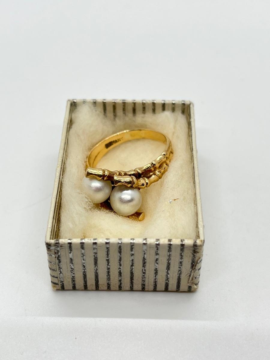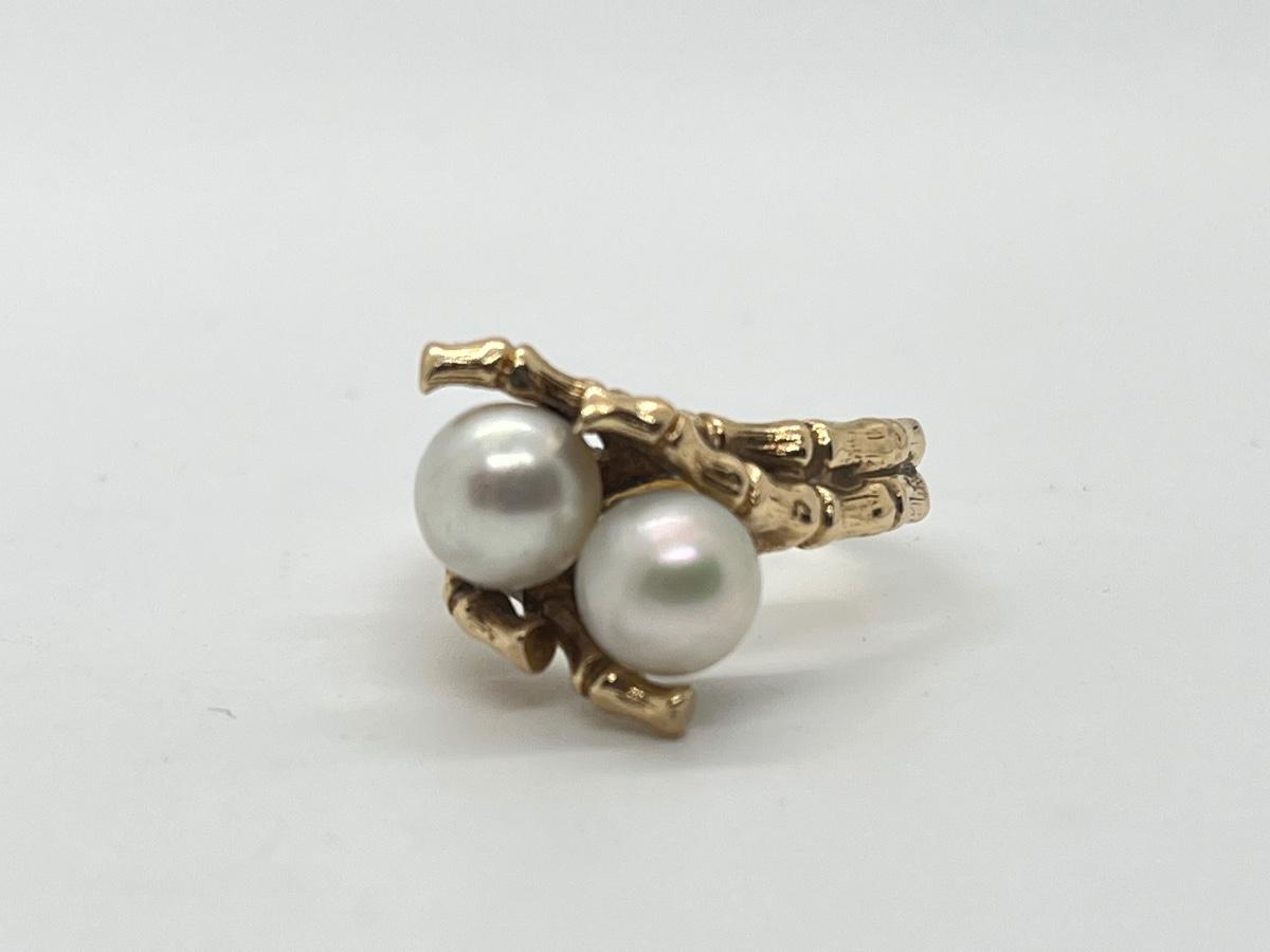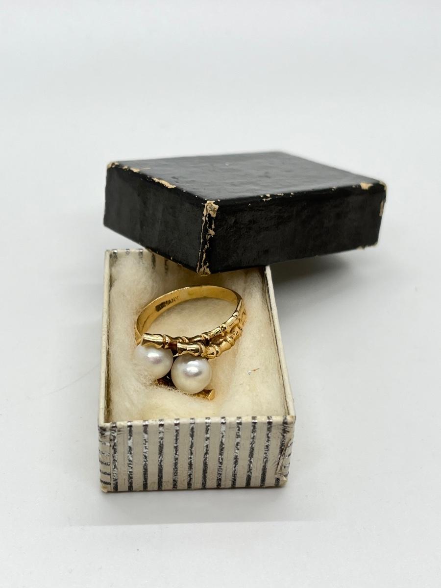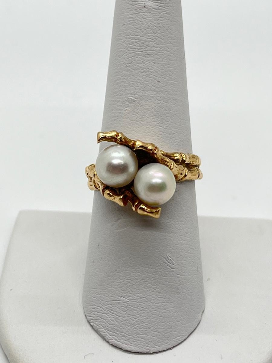 LOT 61: 14K Gold Double Pearl Ring - Size 9 - 6.1 gtw - Marked Germany