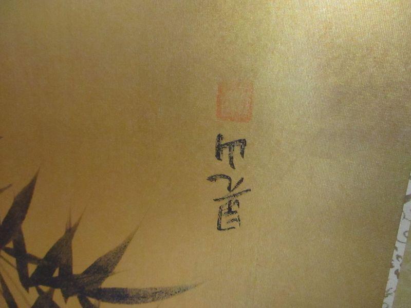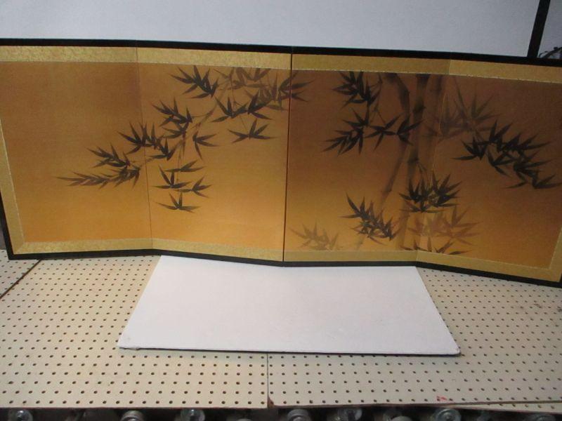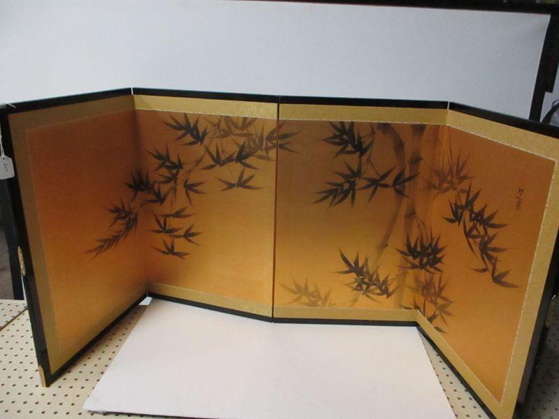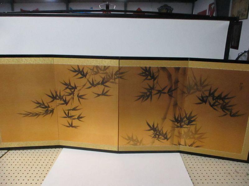 Lot 61 - Vintage Golden Hue Finish Bamboo Shoots and Leaves Quadruple Panel