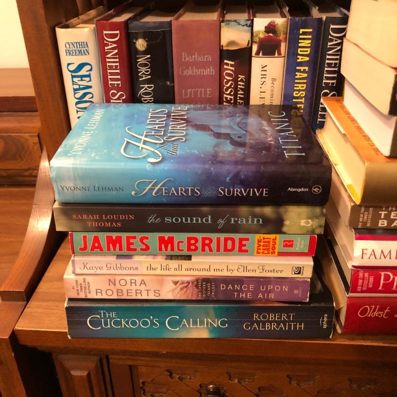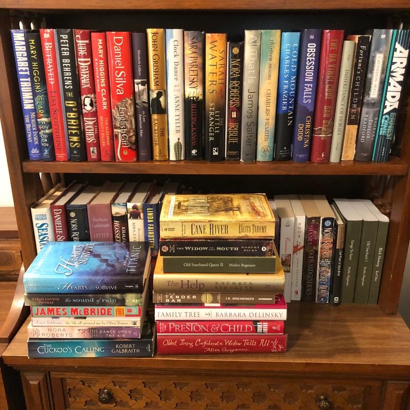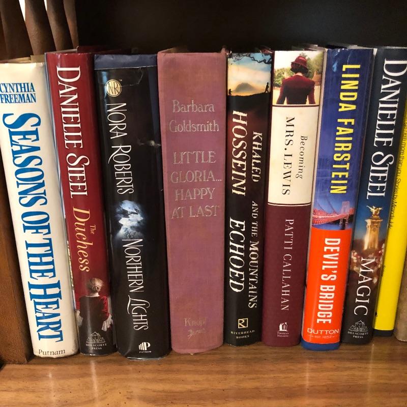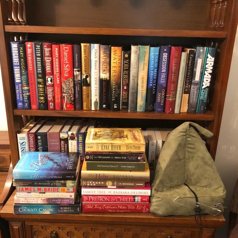 Be prepared for long winter days with this endless collection of novels. Most of them are hardback books with a good amount of paperbacks as well. Check out the images for all these great titles. Lot also includes this handy Bookseat stand.