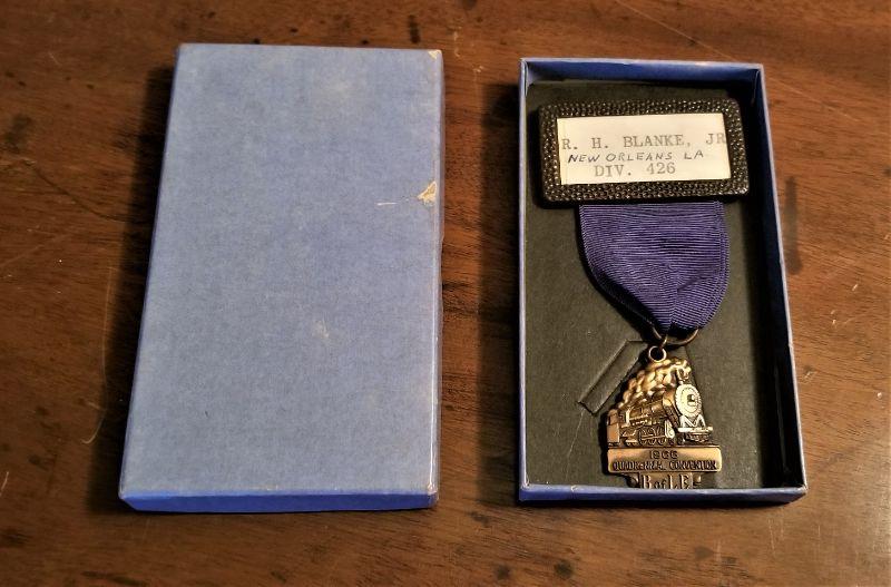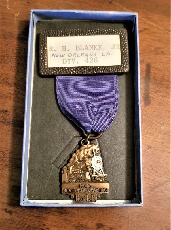 The Brotherhood of Locomotive Engineers held their national convention in New Orleans in 1966 - here is the convention medal in original box. Made by Josten's. 4.25" long. Good condition.