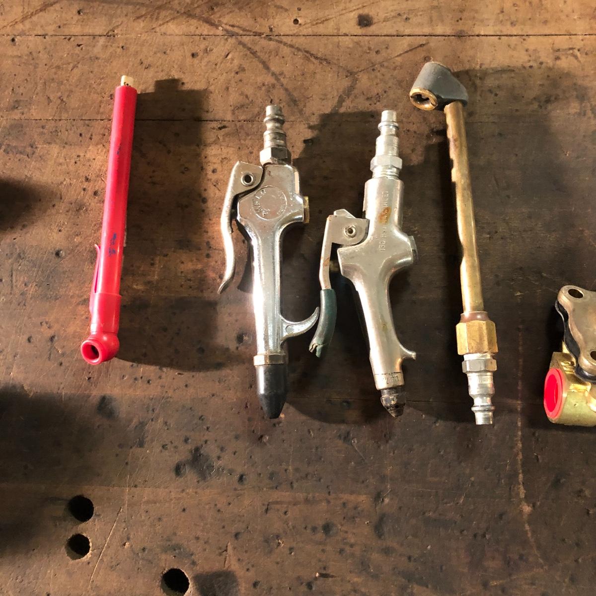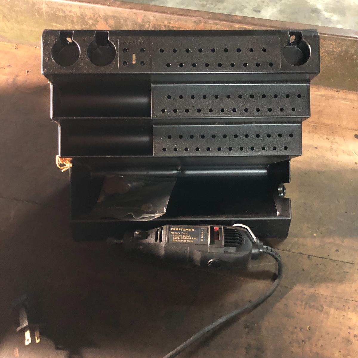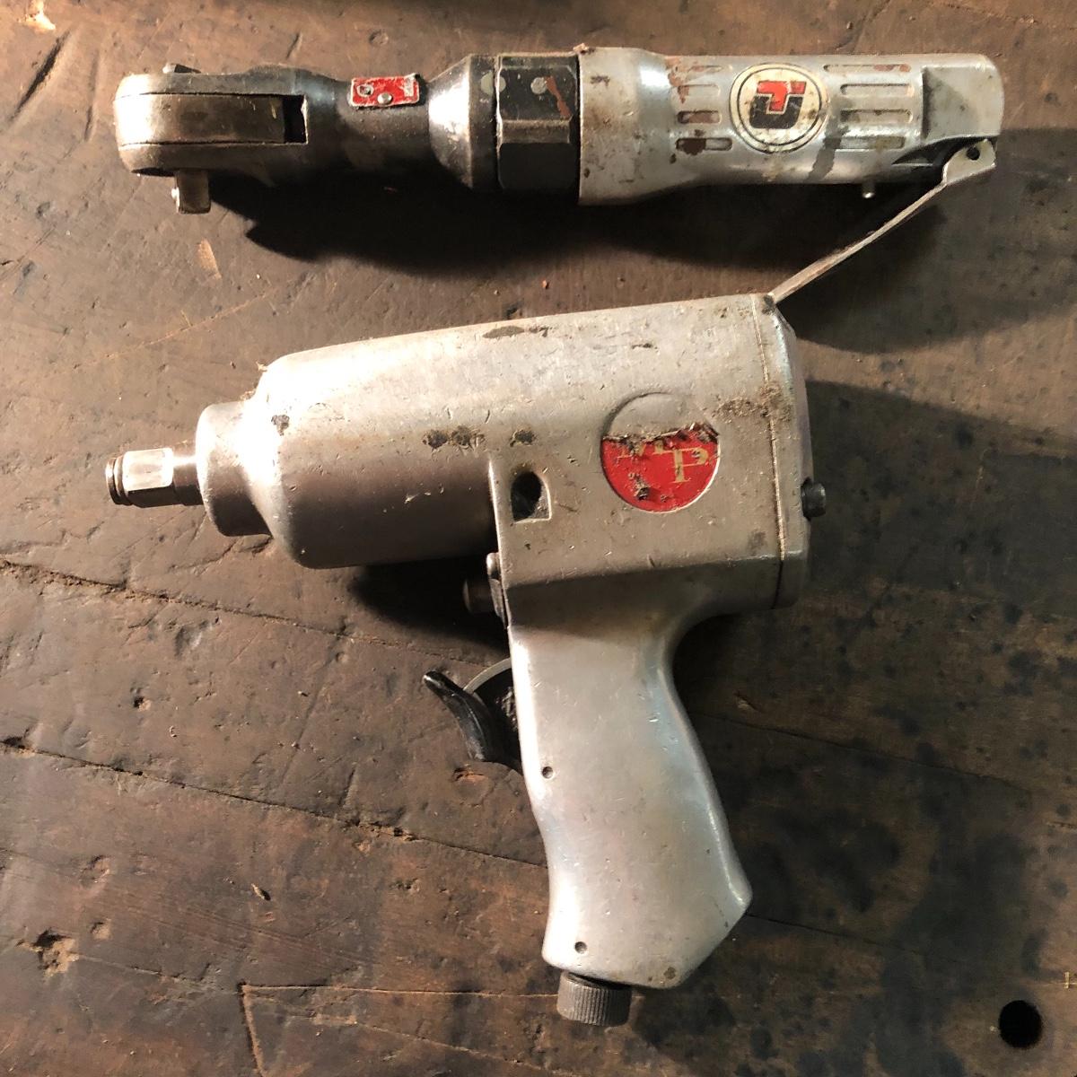 Get your projects done with this assortment of tools that includes Craftsman rotary tool with storage organizer, 1/2” drive air impact wrench, 3/8” drive air ratchet, coiled air hose, air chuck and more. Also includes small clamp light. Light and rotary tool worked when tested. Air tools were not tested.