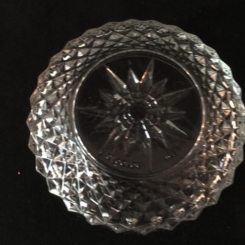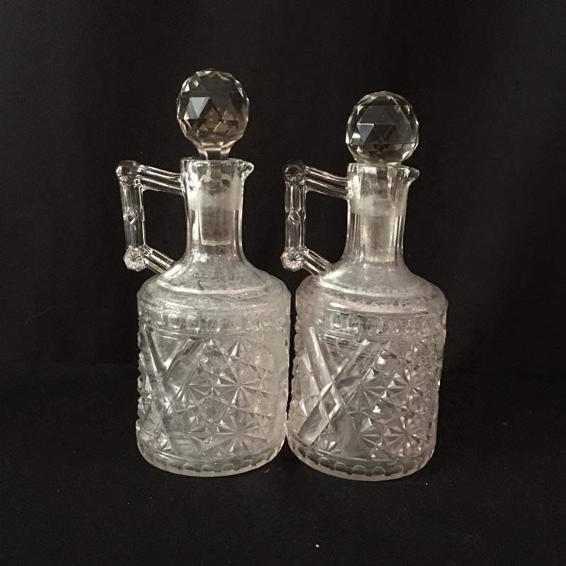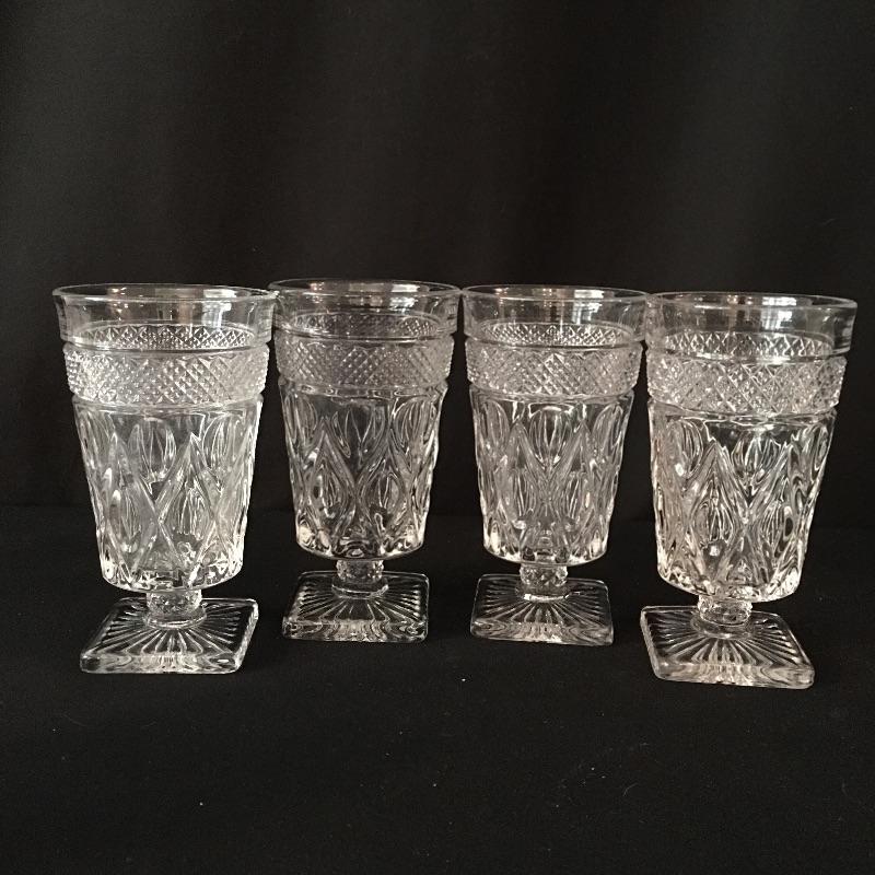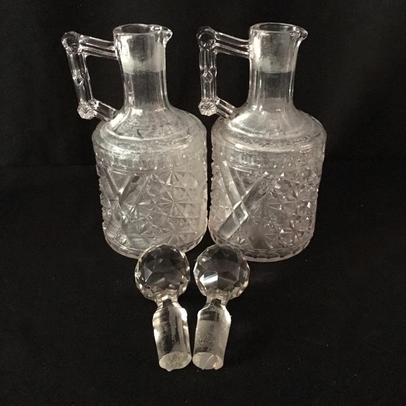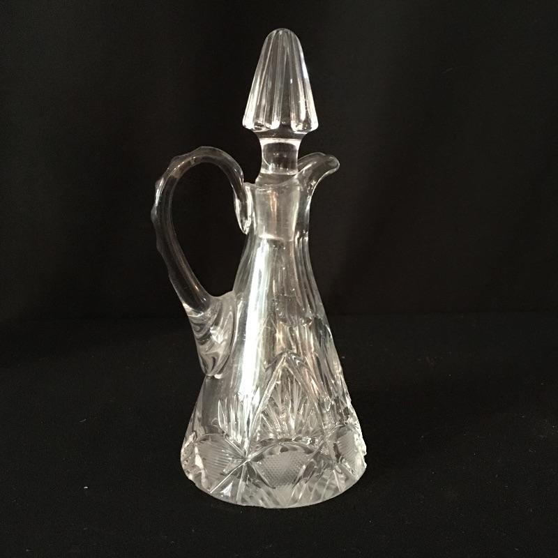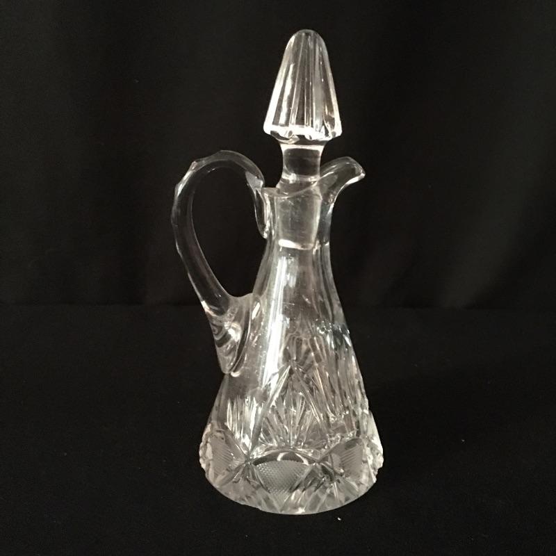Cut and formed glass assortment that includes salt and pepper shakers,seven small plates, four bowls, four glasses, cake platter and three small pitchers. This would make an adorable set for entertaining. Platter measures 9”D x 4.5”tall.