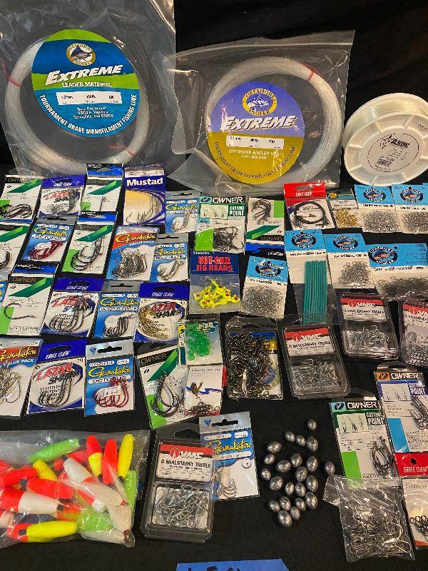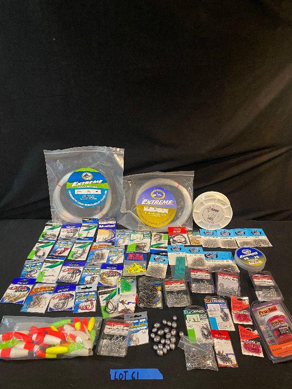 Lot 61 - Fishing Gear (weights, jig heads, hooks, loop protector, split rings, fishing line, foam peg floats and much more!)