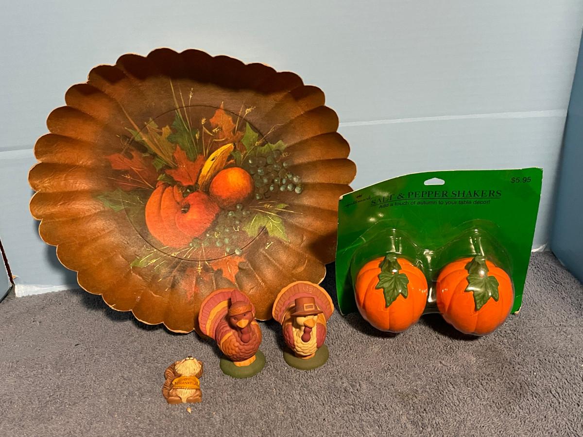 THIS IS SOME GREAT COLLECTABLE THANKSGIVING HALLMARK STUFF! LIGHT WEAR.. CARDBOARD BOWL IS MISSHAPED..