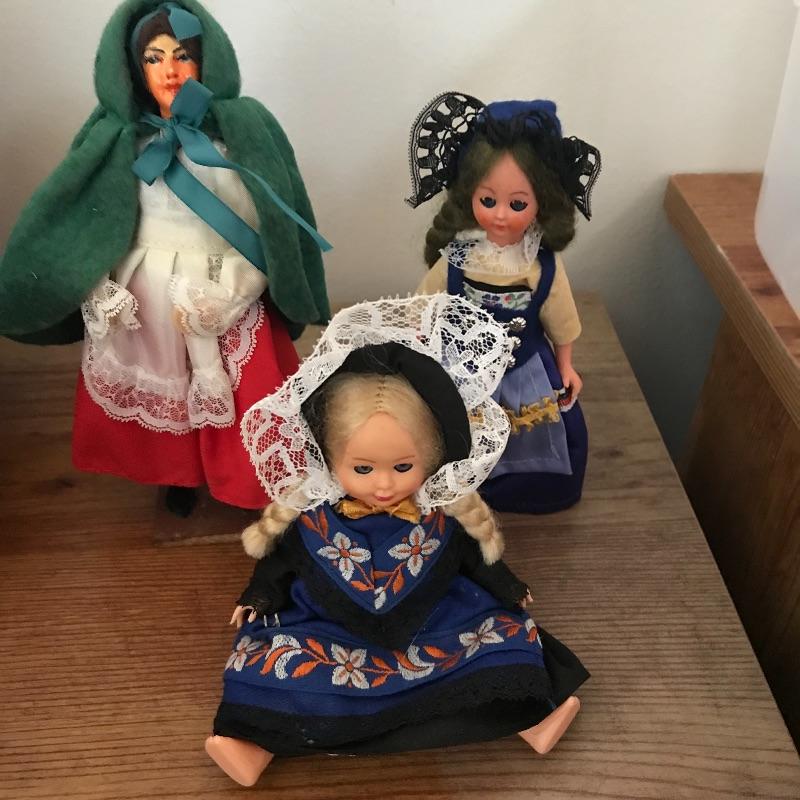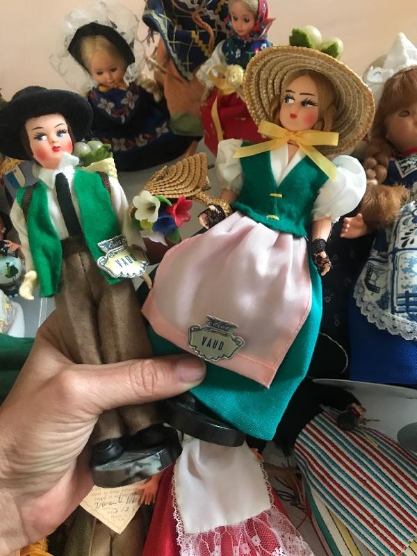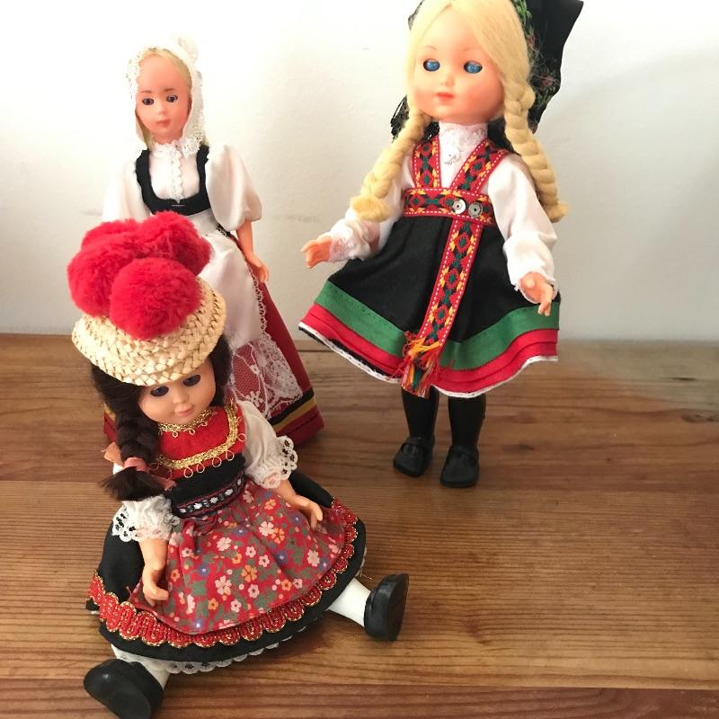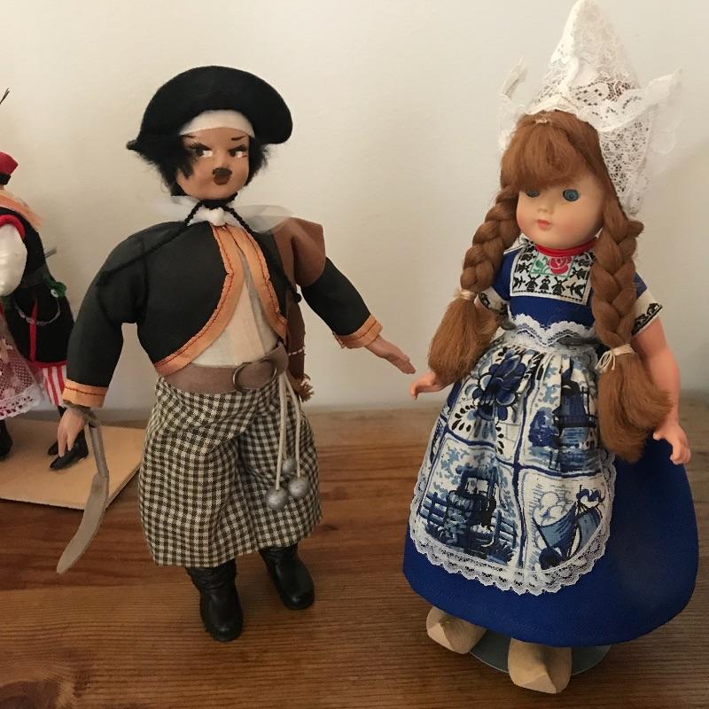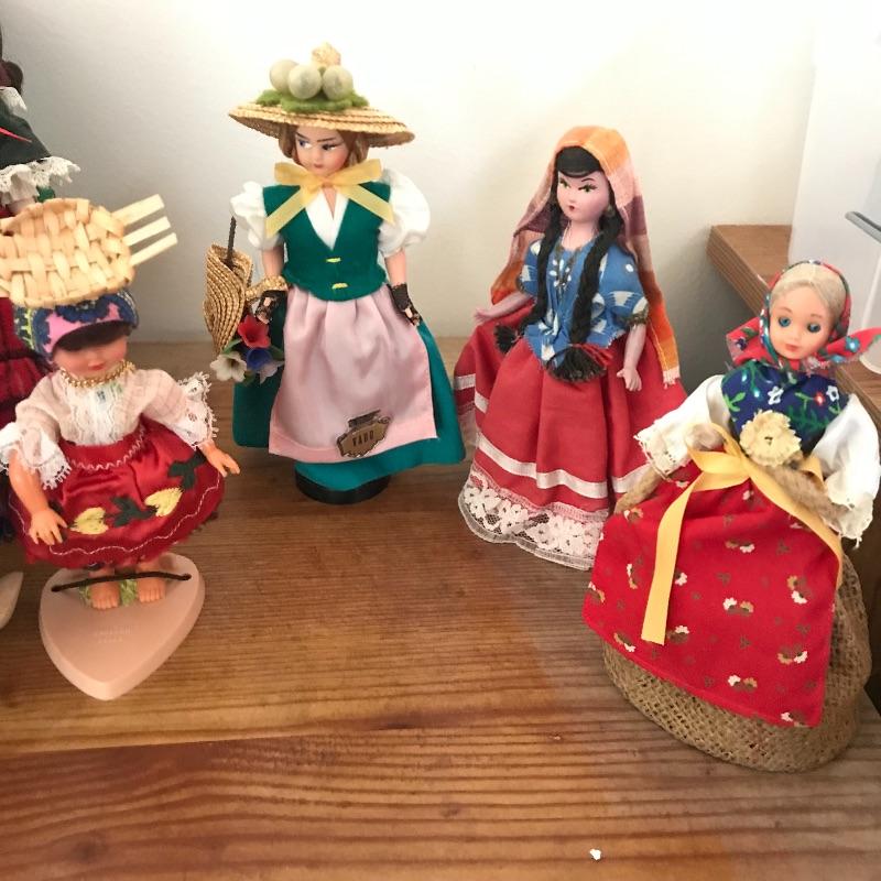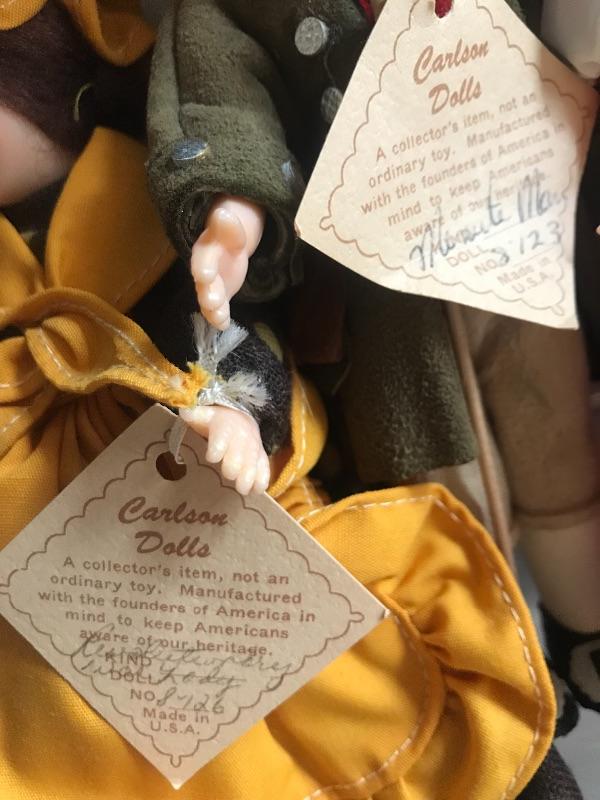 Large doll collection representing a variety of cultures decked in colorful and detailed costuming. Included are two numbered Carlson Dolls, Hazeldene, and many others. See photos for tags about artists and dolls. Dolls are made of differing materials including plastic, wood and corn husk. Some have moveable limbs. The tallest of the group measures 12" high. Very good condition. Shipping available.