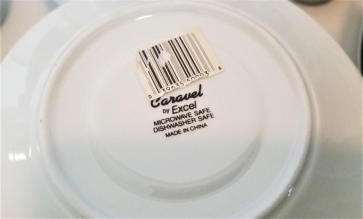 Most of these dishes still have the bar codes on them - you get all you see here - 2 covered tureens, 2 pitchers, salt/pepper, 8 cups, 10 saucers, 10 plates, 12 bowls, 11 small plates. They are microwave and dishwasher safe. CARAVEL pattern by Excel. Good dealer lot if you sell on Ebay.