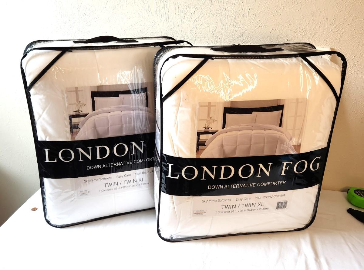 Nice lot of 2 London Fog Down Alternative Twin sized comforters - new in package. 66" x 92" - Noted as Easy Care, Size Twin/Twin XL.