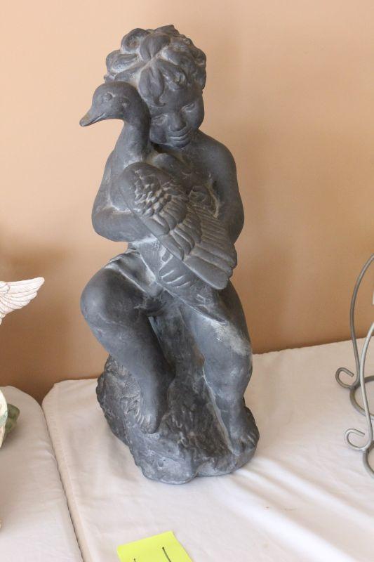 Lot 61 Lrg. Child Holding Duck Statue (Resin lightweight)