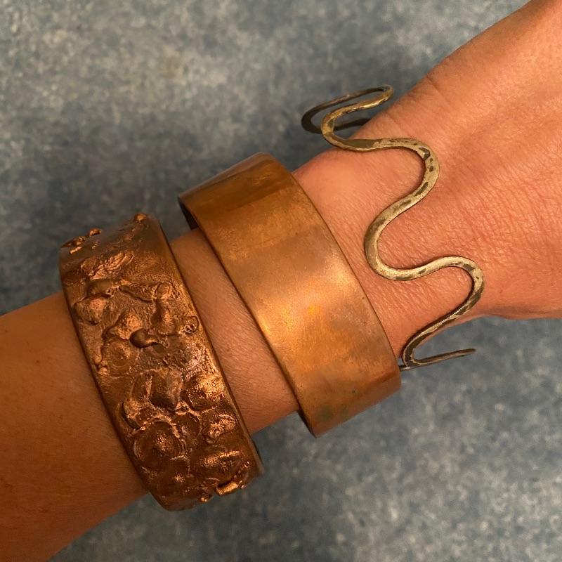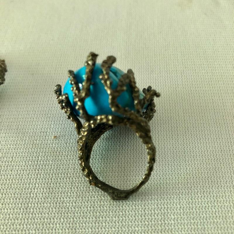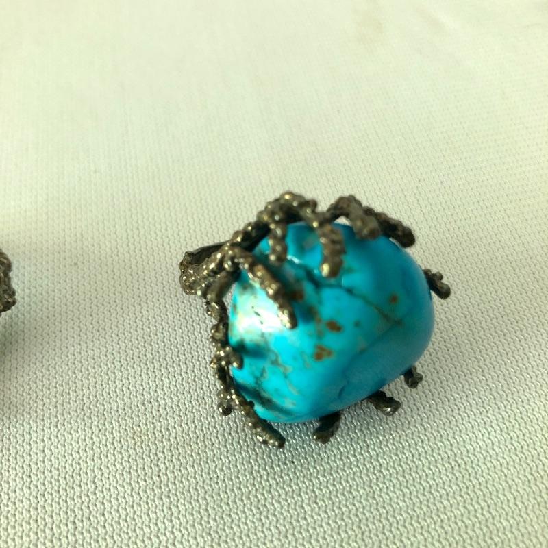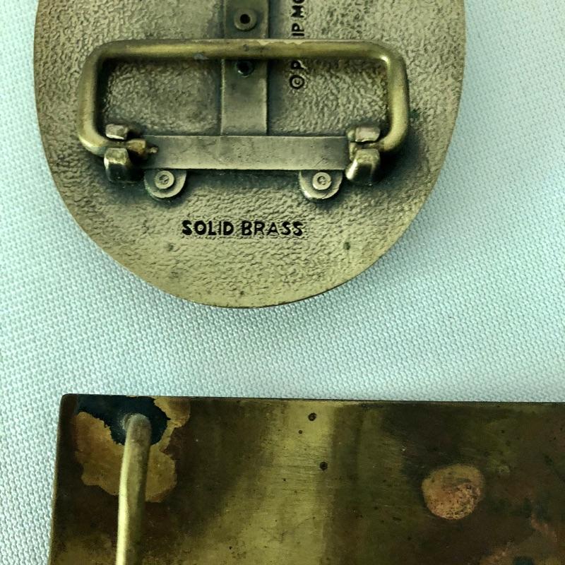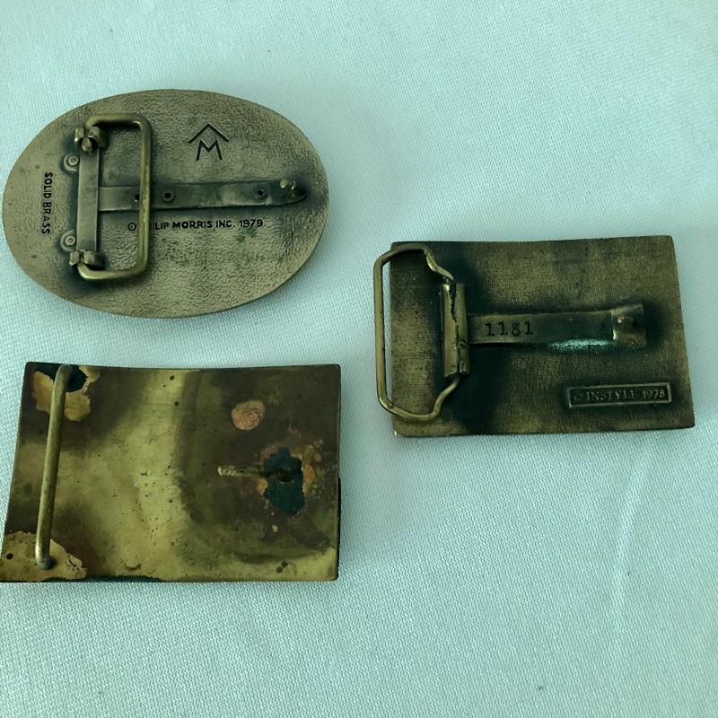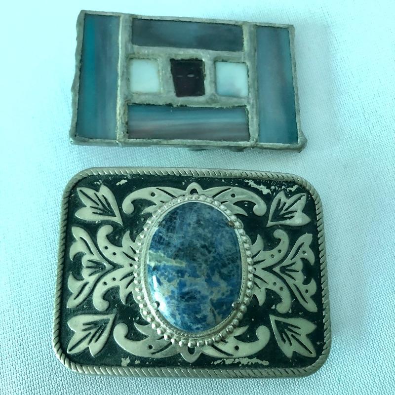 Buckle up guys, this lot has a great selection of accessories! Some really unique finds here that include pieces made from silver nickel, brass, copper and more. The buckle that looks like a cowboy spur is really cool because the rowels of the spur spins. A total of twelve belt buckles, one money clip, a lariat necklace, two copper and last but not least two rings. The one ring has what appears to be a large turquoise stone, the other is missing its center piece. Some kind of metal. See images for sizes.