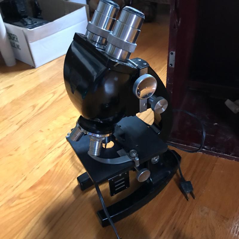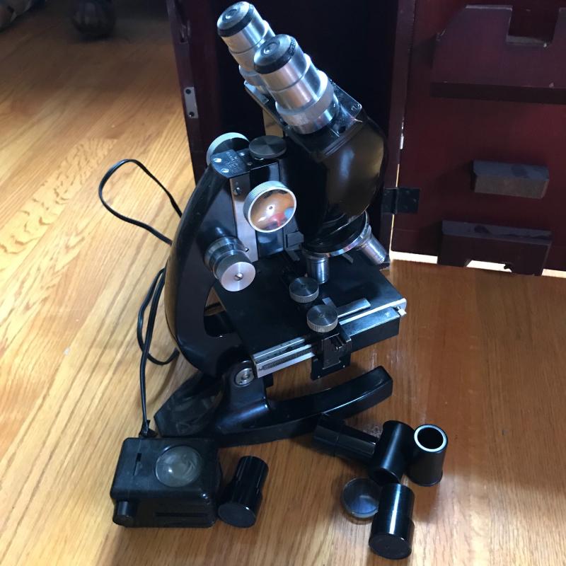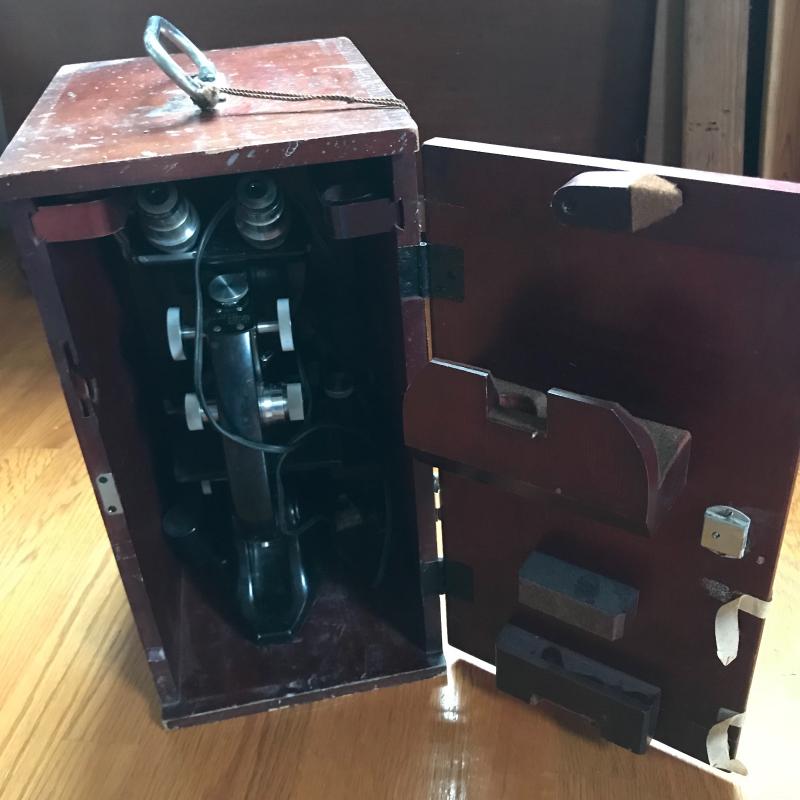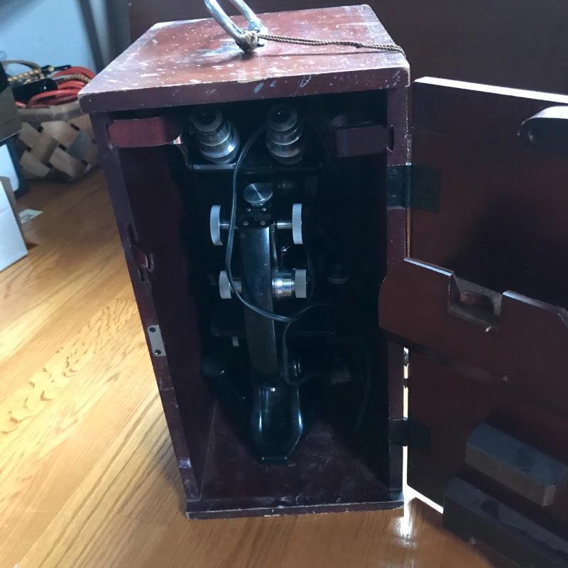 Lot contains Antique Bausch & Lomb microscope in metal carrying case. Says TB3145. Approx. 13.5” tall. See pics. Shipping or Local pickup only in Asheville, NC.