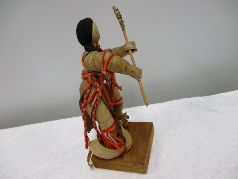 Lot 61 - Native American Corn Husk Doll Playing Shinny 11" Corn husk doll