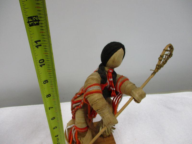 Lot 61 - Native American Corn Husk Doll Playing Shinny 11"