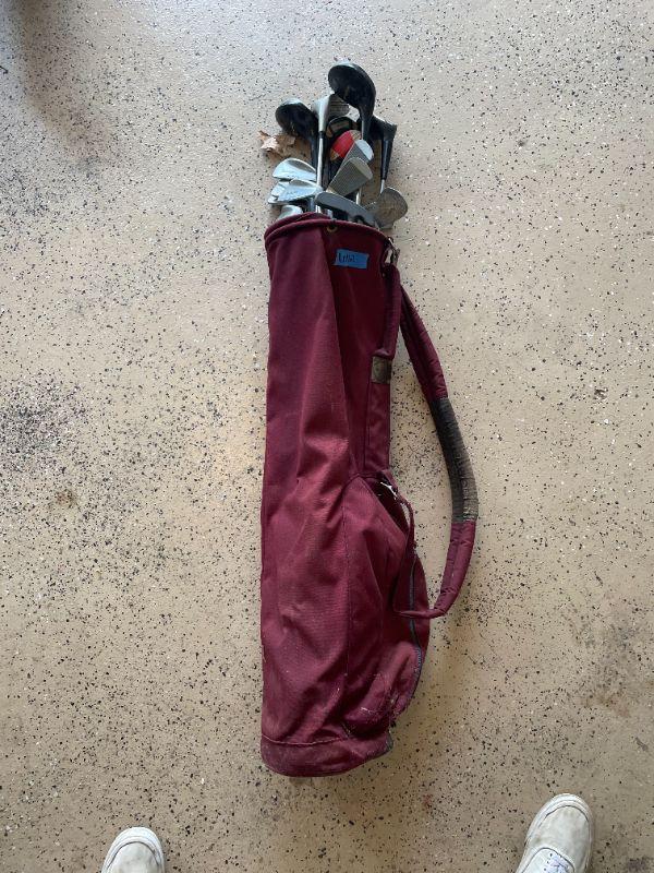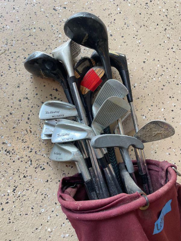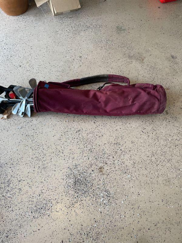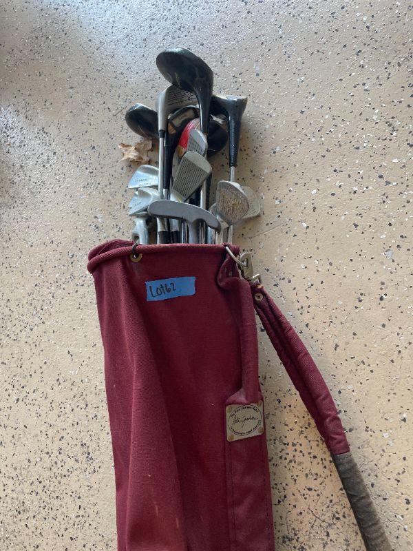 Lot 61 - Peter Jackson model golf bag and misc. golf clubs