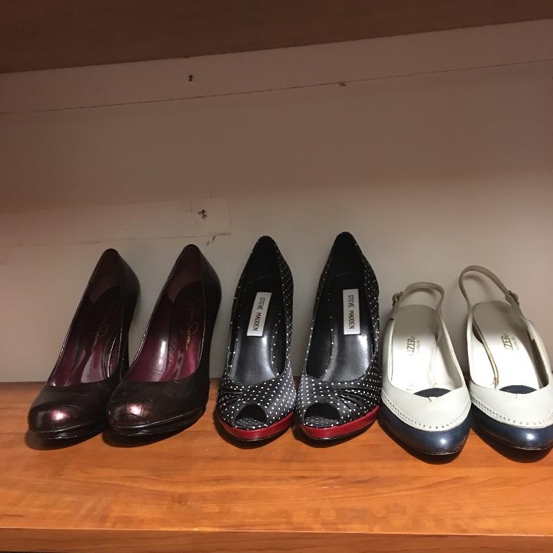 You will have shoes for just about any occasion with this collection of pumps in a plethora of styles, materials and colors. Brands include Ed Hardy, Steve Madden, Bellini, Dollhouse, Coup Detat, Me Too and more.
