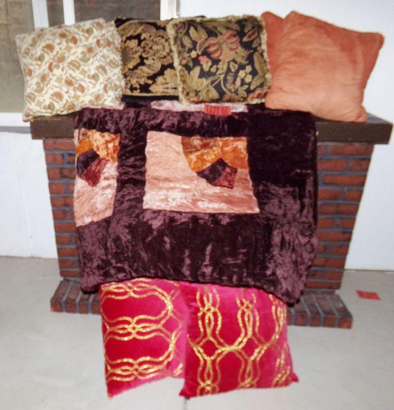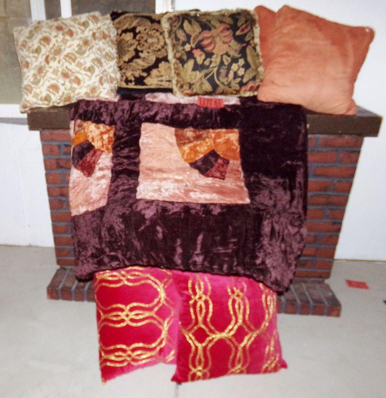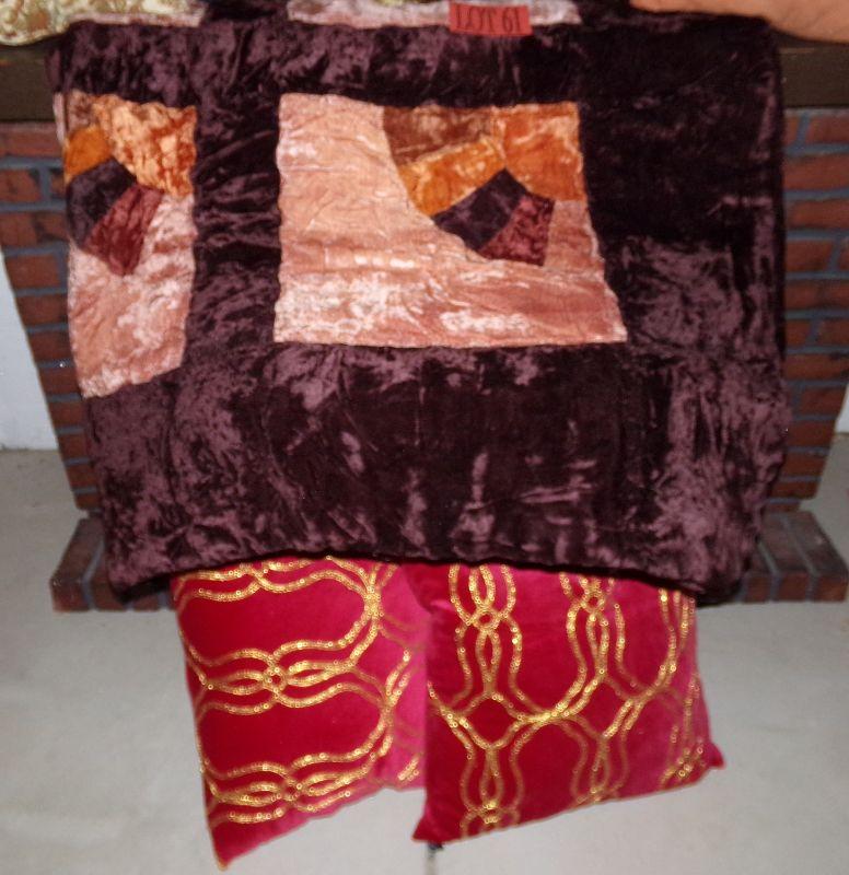 MULTI COLORED VELVET QUEEN COMFORTER AND THROW PILLOWS