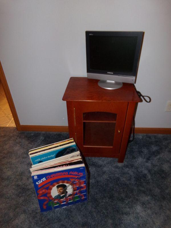 ELVIS, VICKI CARR TO NAME A FEW. LOT ALSO INCLUDES GLASS FRONT CABINET AND MONITOR