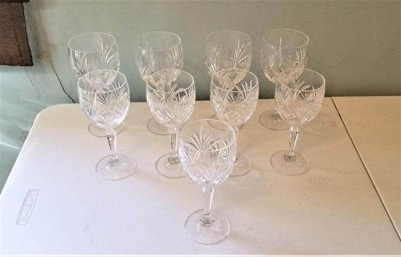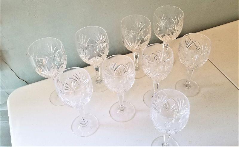 You get 6 white wine glasses and 4 Red wine glasses - lead crystal. Good condition. Yes - there are only 9 pictured here, but after we took the photo we found an additional matching white wine glass. White wines are 6.5" tall, red are 7" tall.