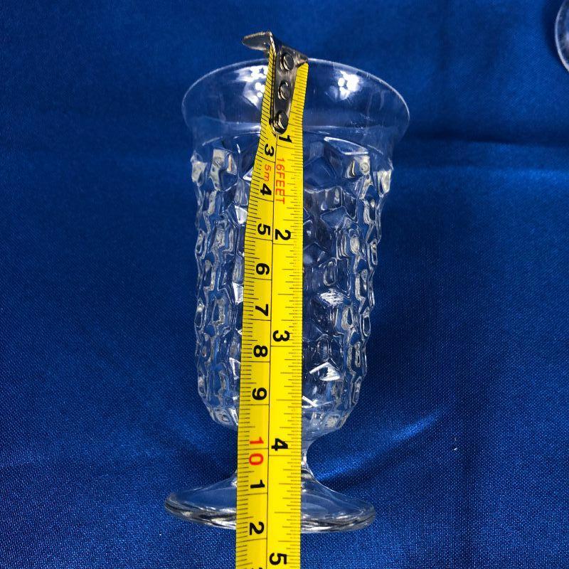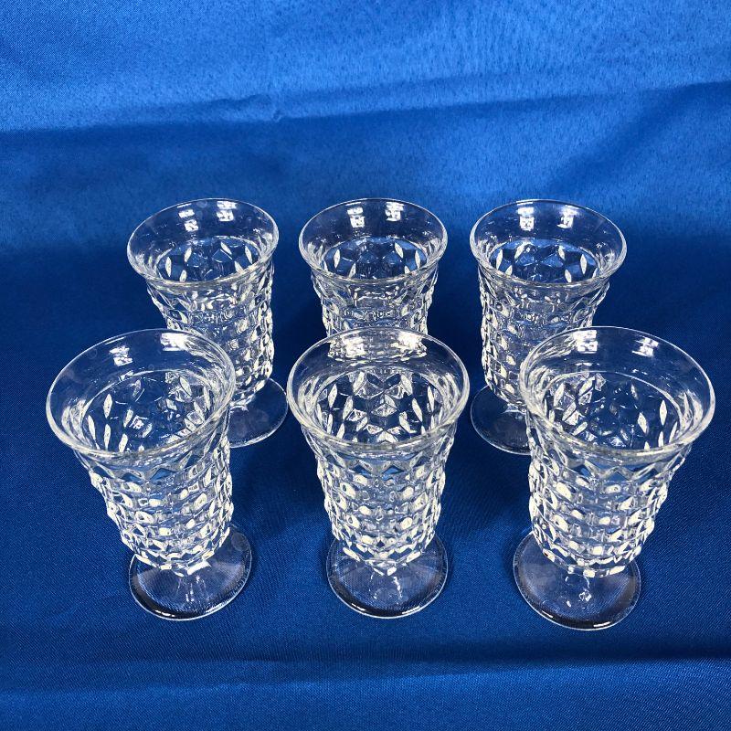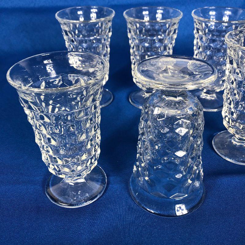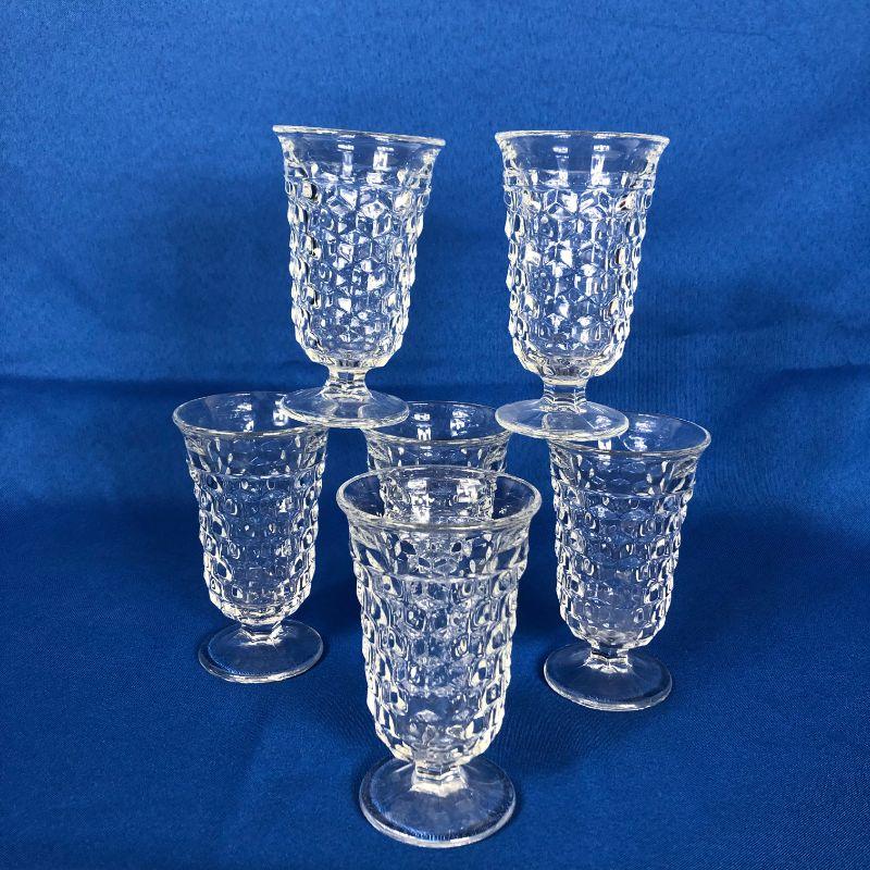Set of 6 wine goblets in the Fostoria American Pattern with flared top. 4.75" tall stemmed hand blown glasses. No flaws