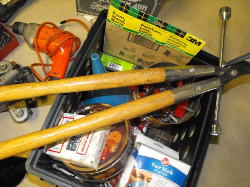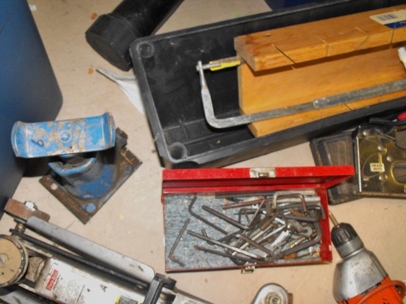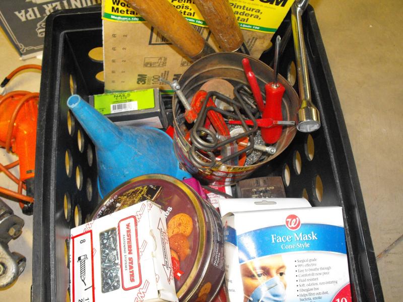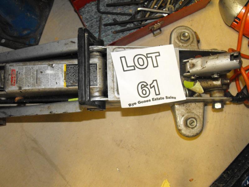 Big Lot of Tools, Floor and Bottle Jacks (no pump handles) Hardware in Organizer and Misc.