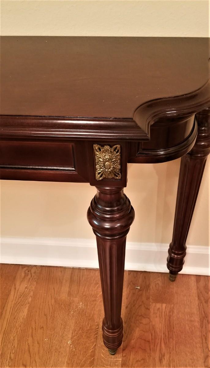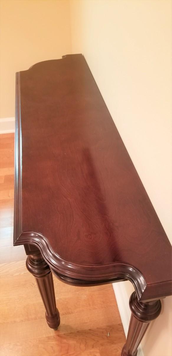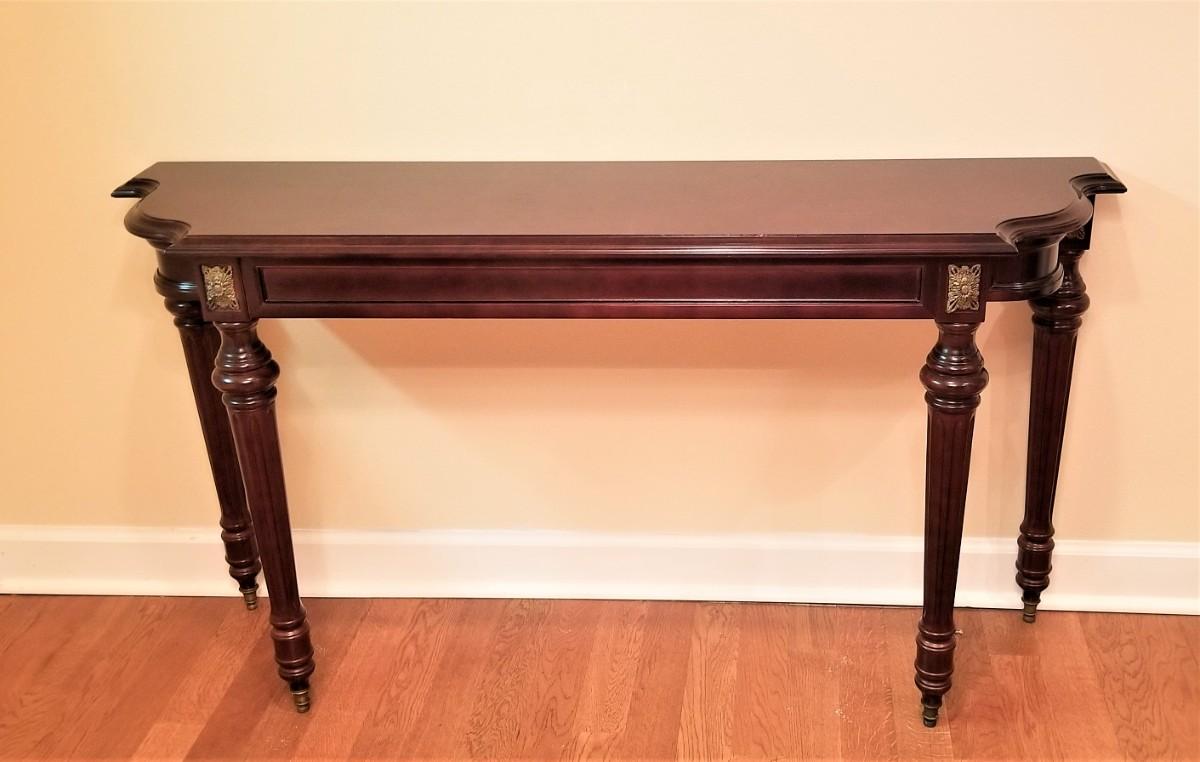 A versatile piece - use at the back of a sofa or against the wall in living room or foyer - mahogany finish, 55.5" wide, 14.5 Deep. Good condition.