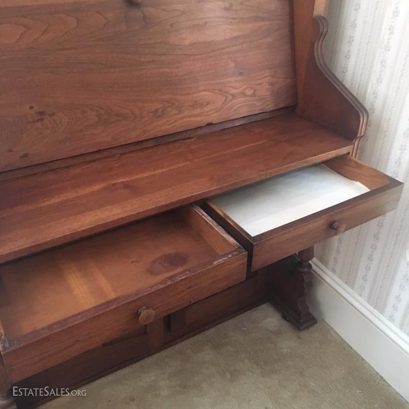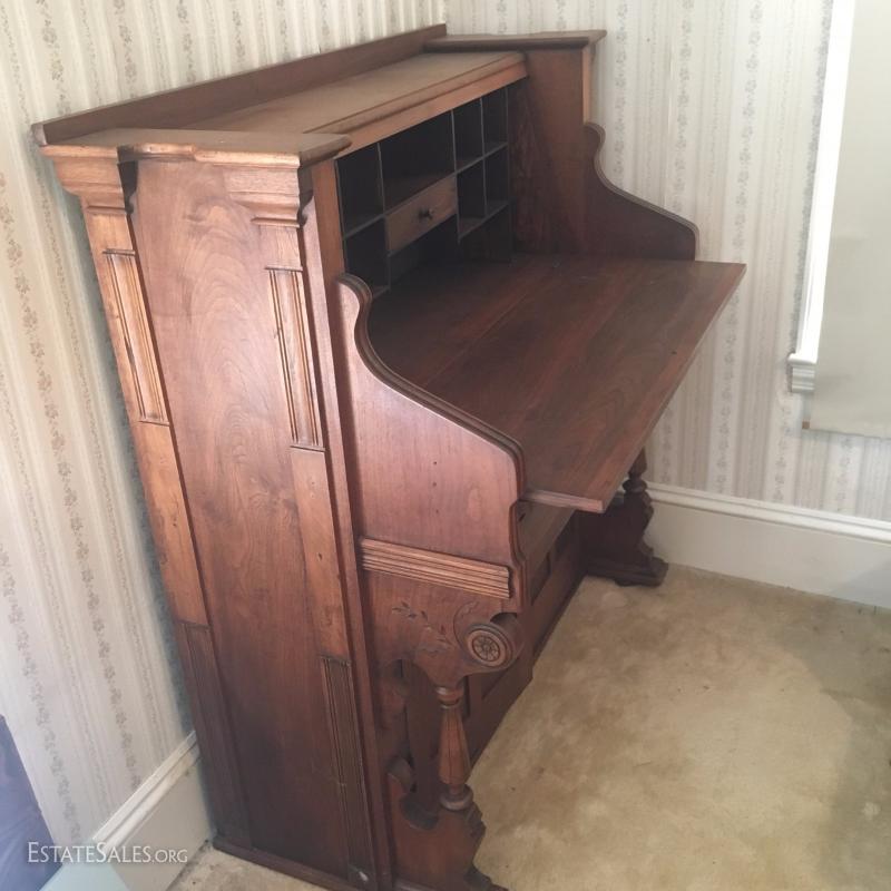 Excellent idea to turn a beautiful carved wood unused organ into a useful secretary desk. Very well made. Sturdy. 47"l by 24"deep by 50" tall