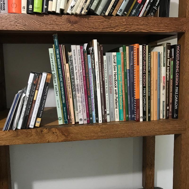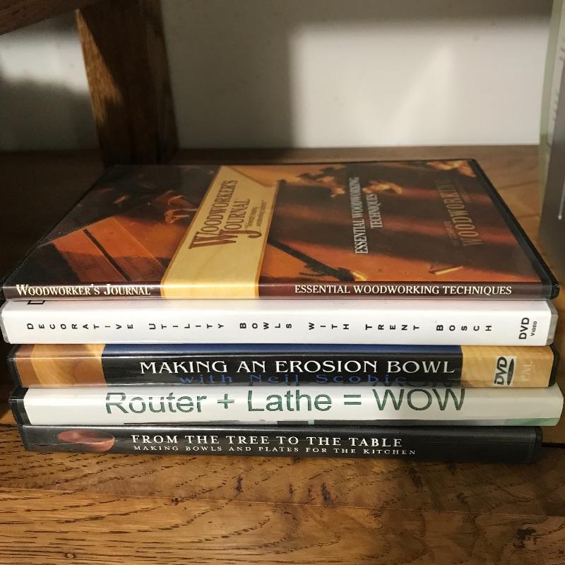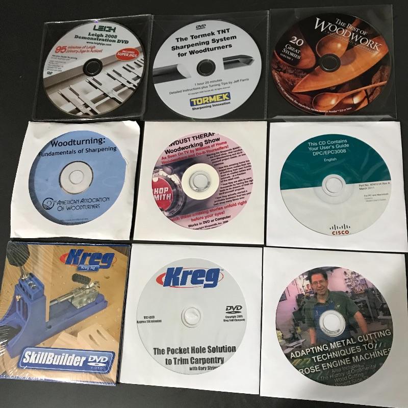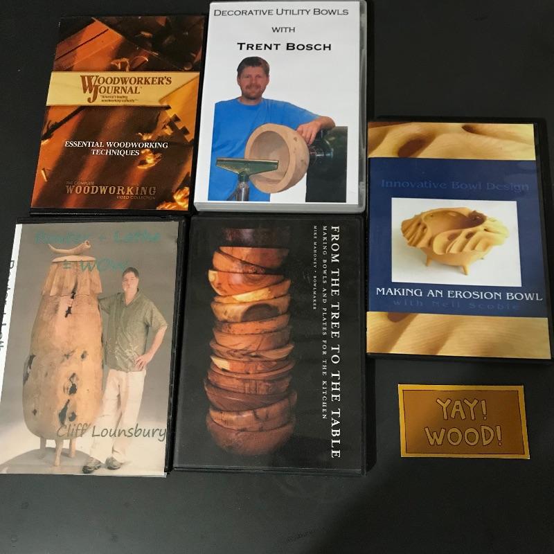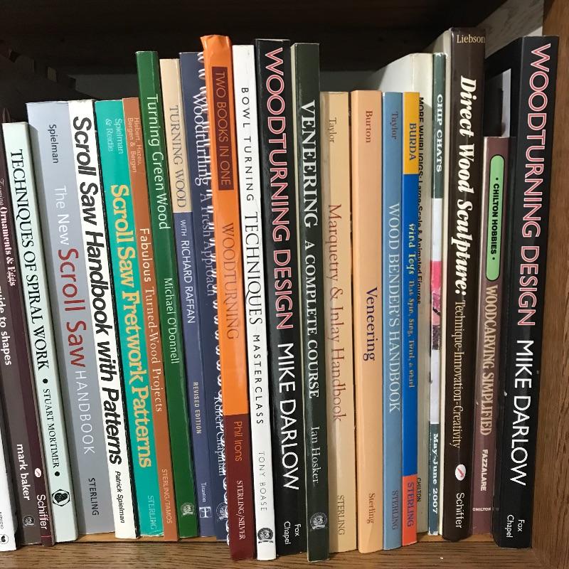 Small collection for the woodworker! Collection includes instructional books, magazines and DVDs. See photos for inventory, note secondary photos of reference material without titles on bindings. Shipping available via UPS.