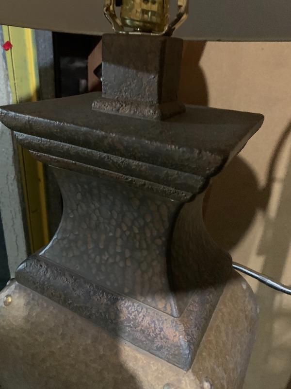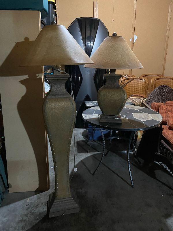 2 matching lamps one floor lamp 64” tall and one table lamp 32” tall. Very nice quality and very heavy.