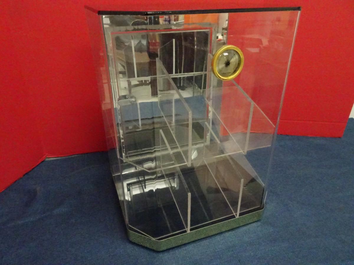 LOT 610. CIGAR DISPLAY CASE WITH HUMIDITY GUAGE