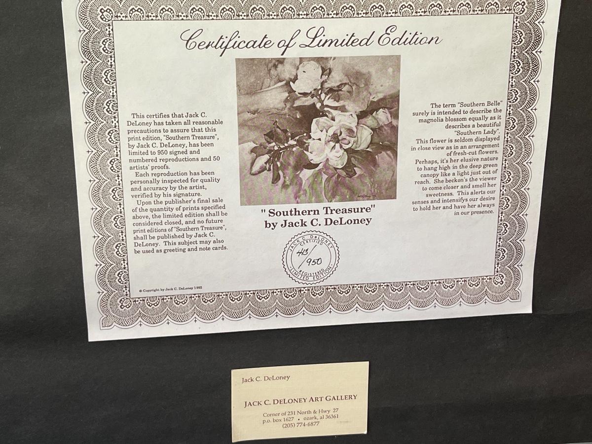Jack Deloney “Southern Treasure” framed and signed print - Lot002