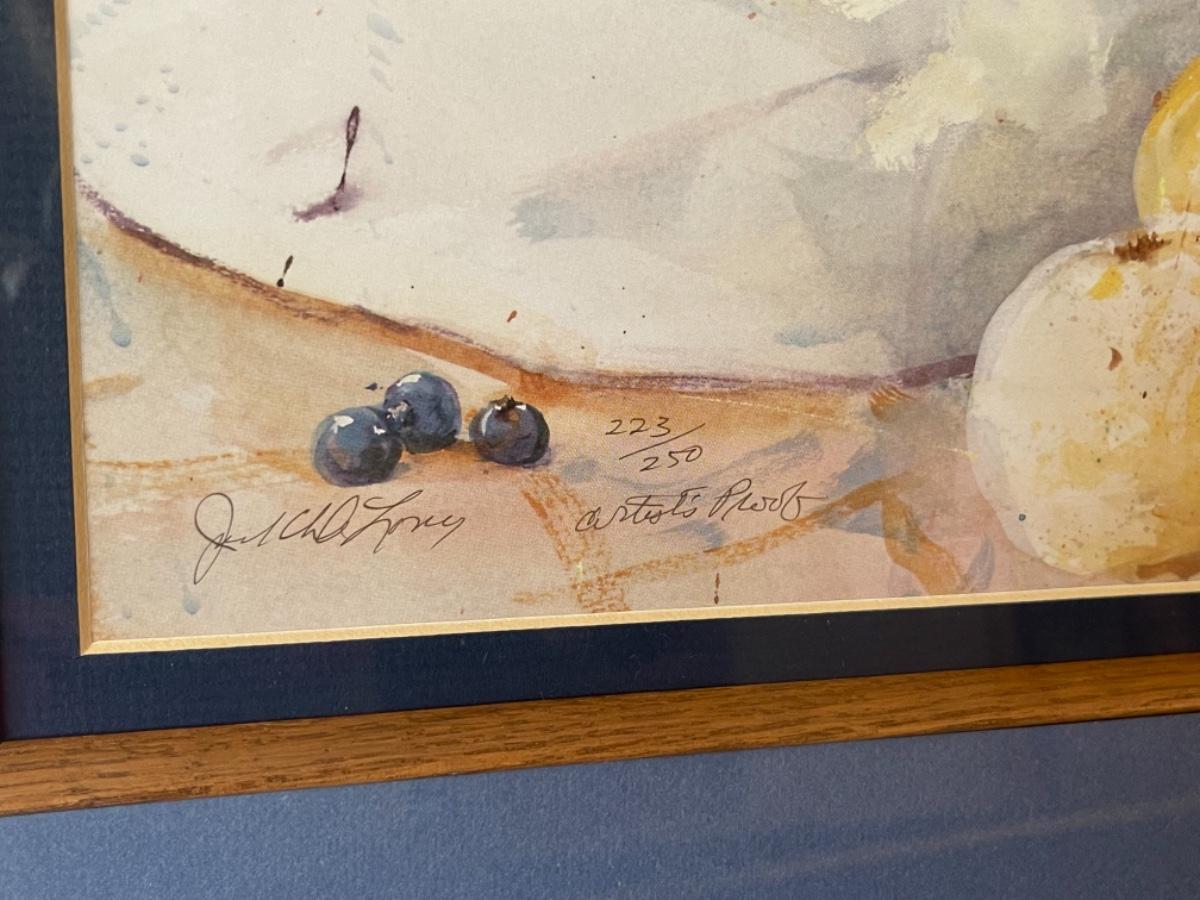 All our deloney prints are signed and numbered. If a COA is present, it will be included in pictures. Dimensions are shown on the last photo for each print. If framed, dimensions are to the frame edges and if notframed they are for the size of the actual print.
