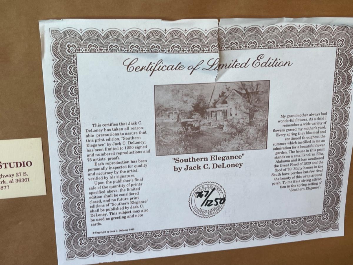 Jack Deloney “Southern Elegance” framed and signed print - Lot015