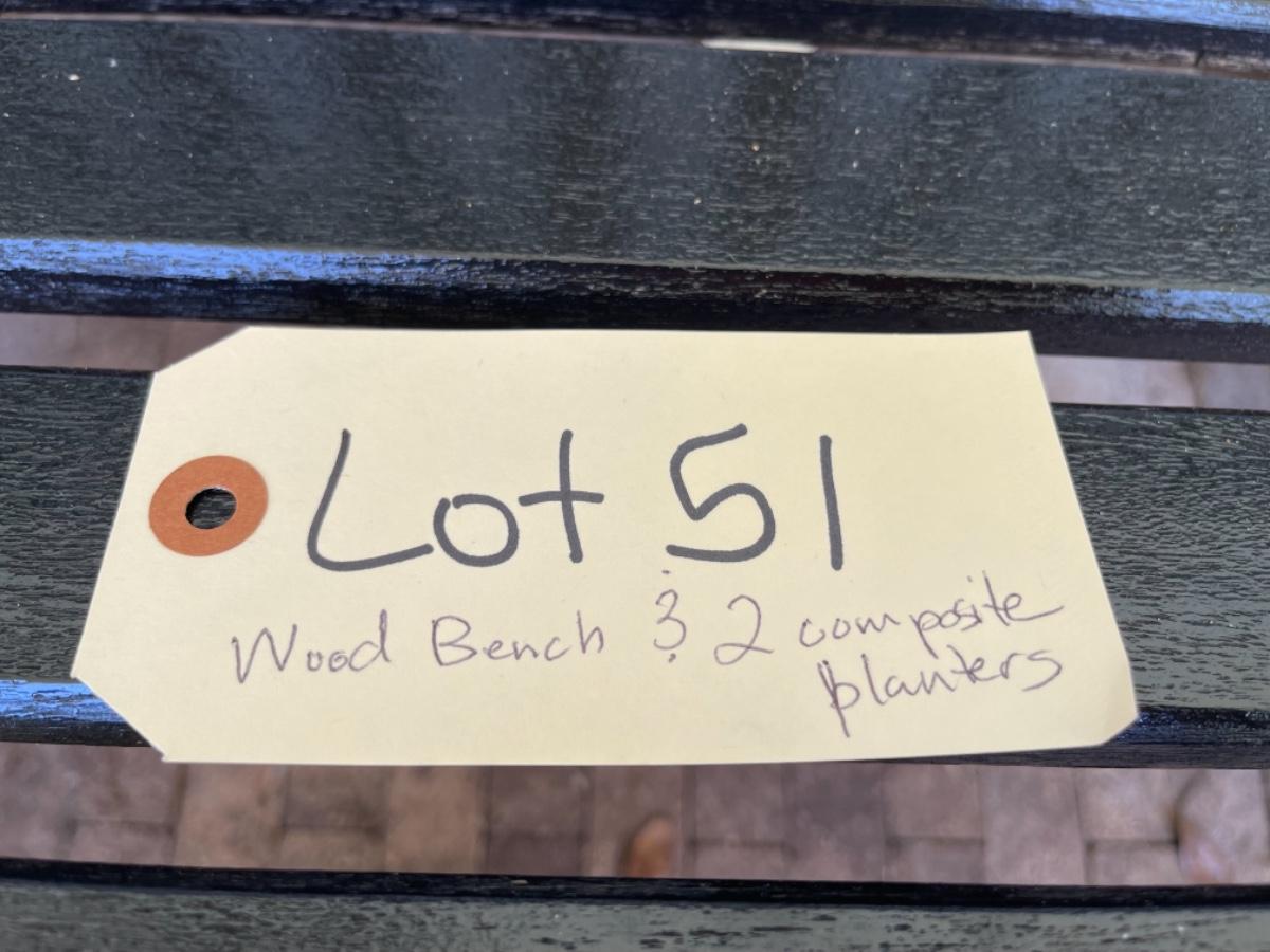 Planters are made of a composite. Ferns are real. Bench is made of so,I’d Wood and is heavy and sturdy.