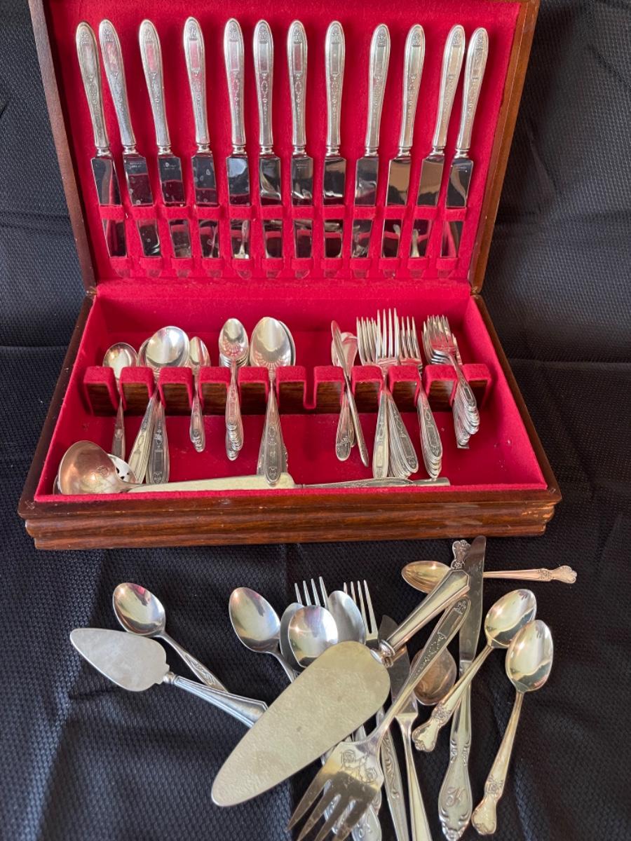 Community Plate silver Plated Flatware set in Wood Case Lot059