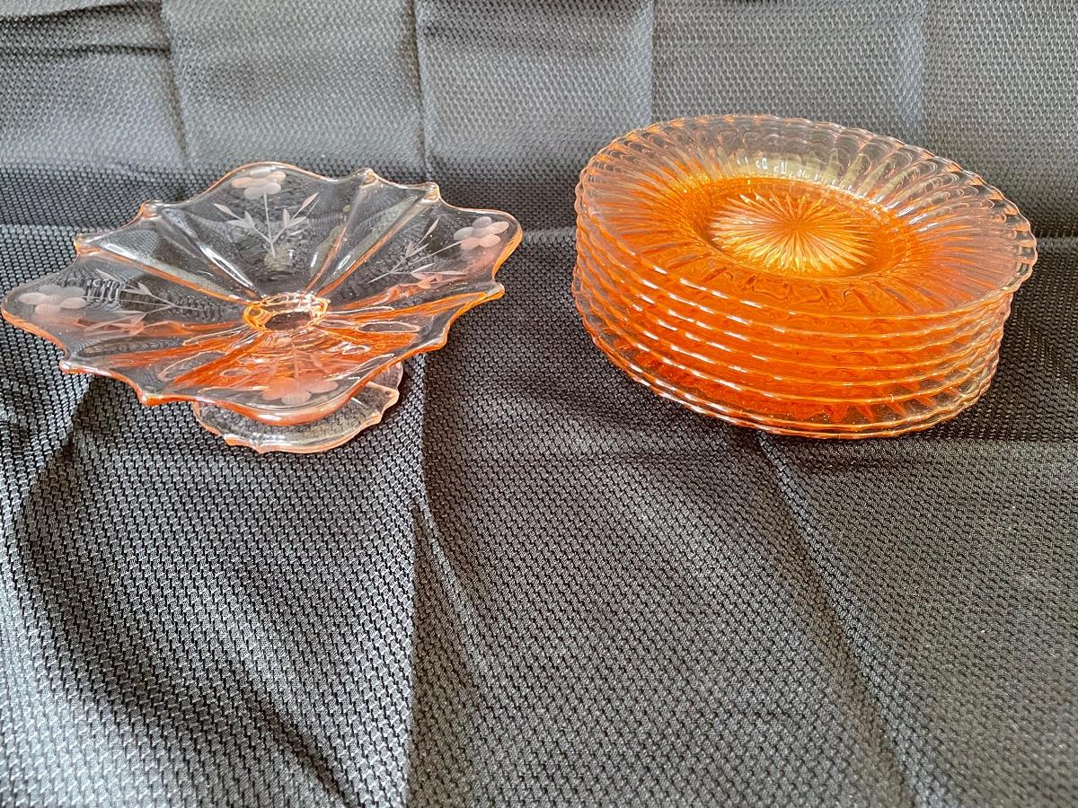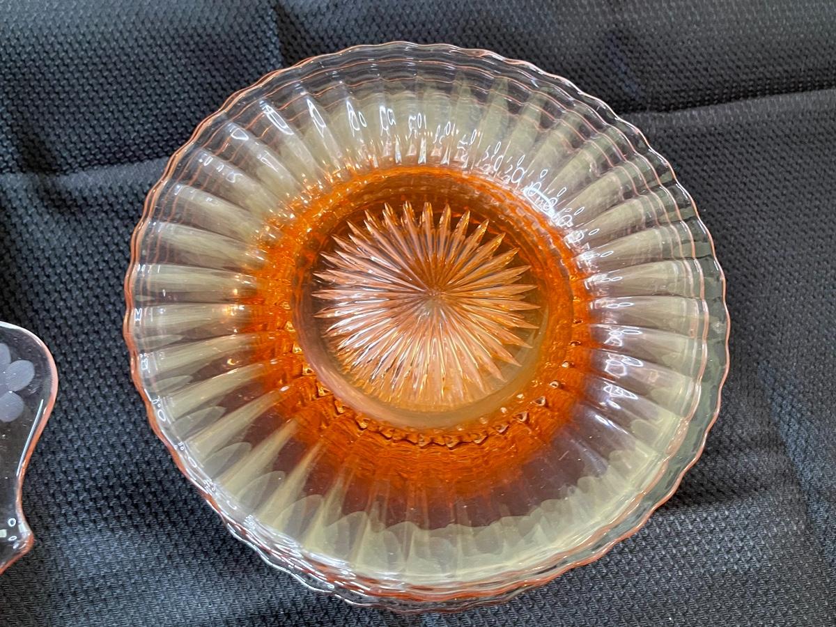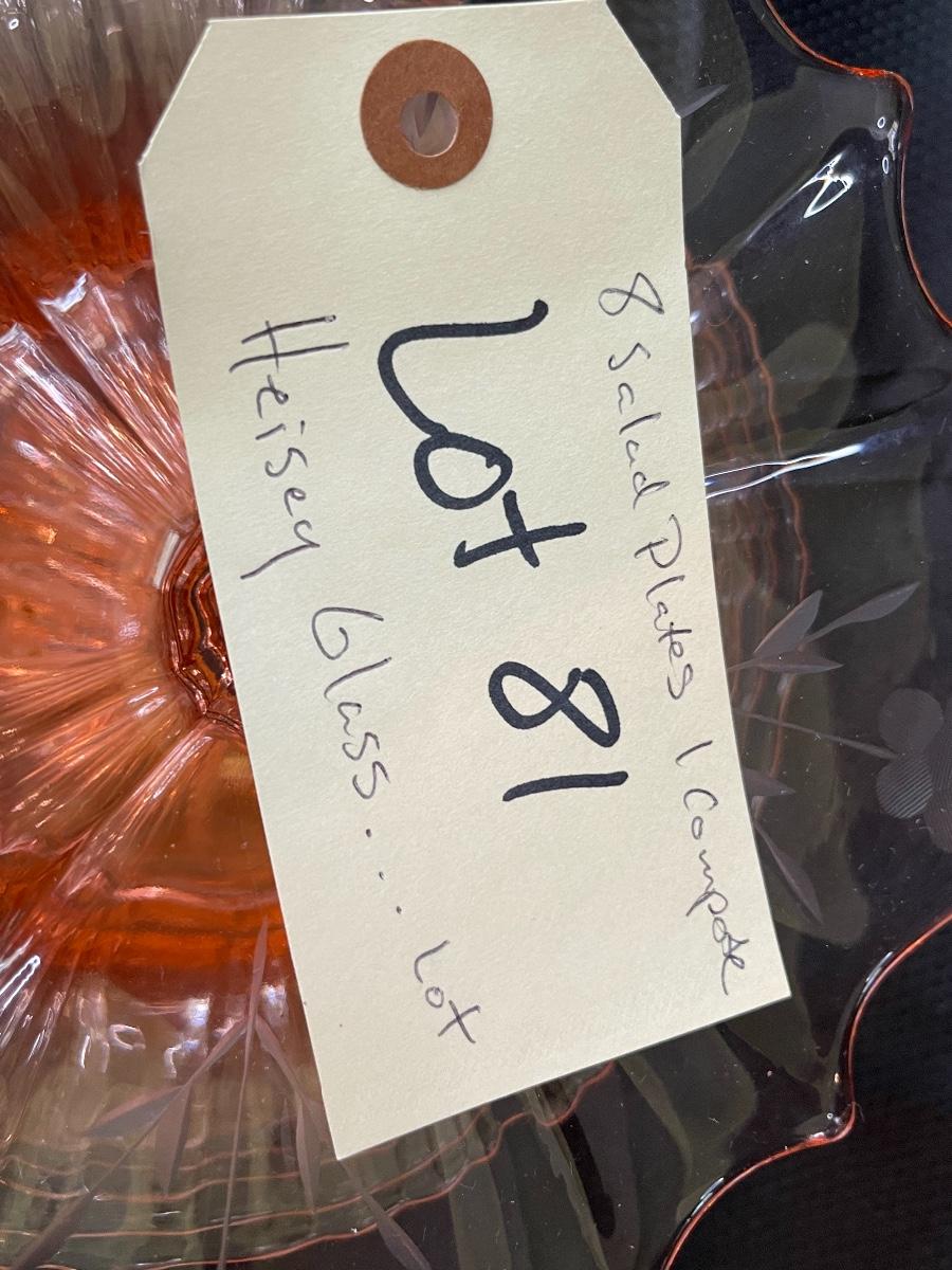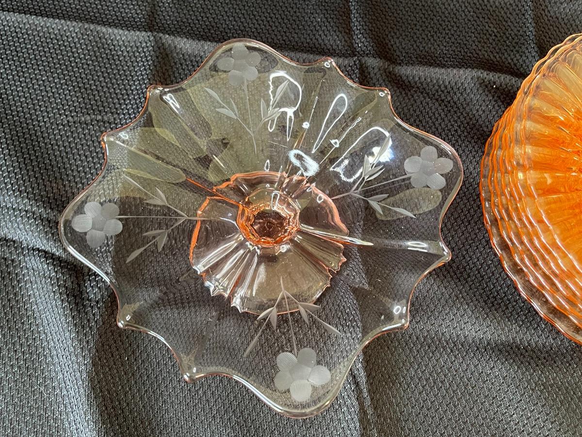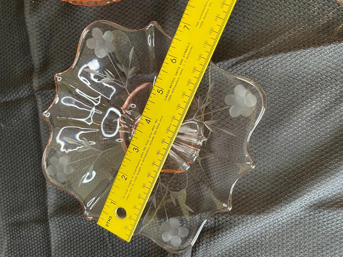 Pink cut glass Compote and Heisey Glass Side plates Lot081