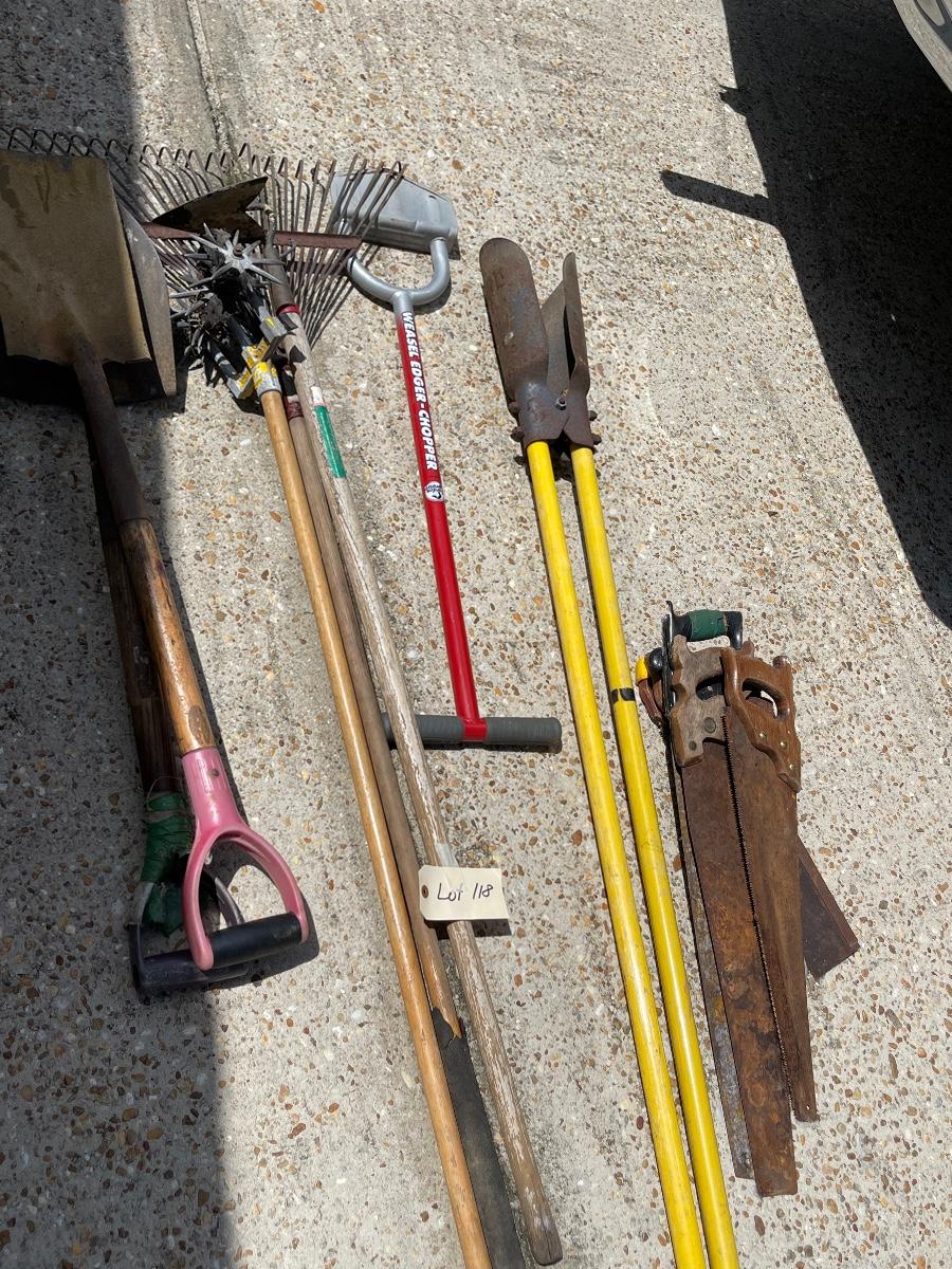 Lot of tools Shovel Rake Post hole saws etc Lot118