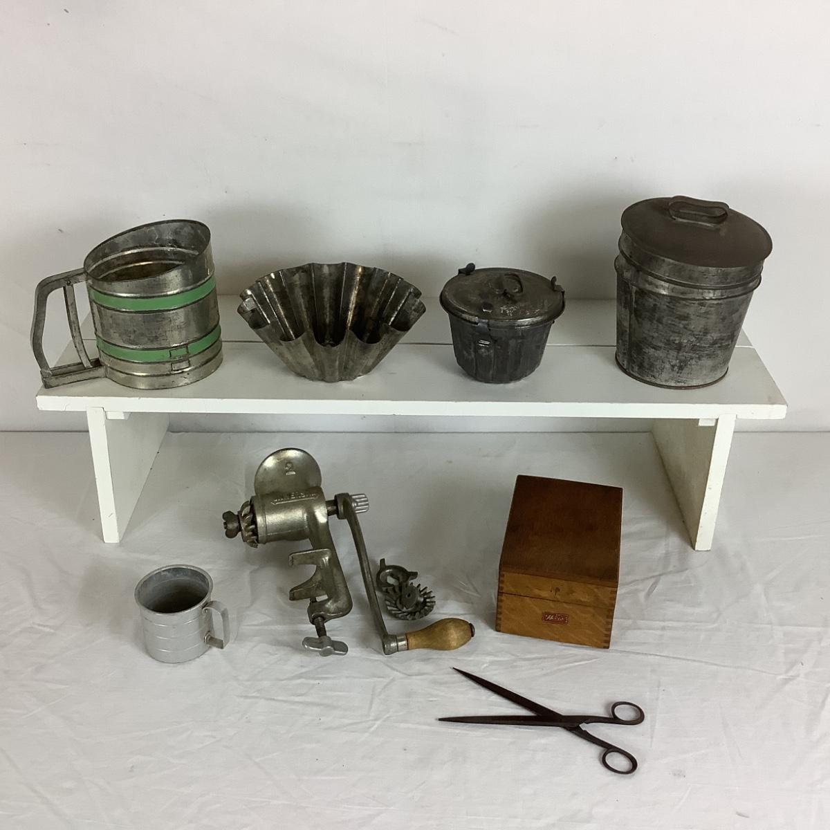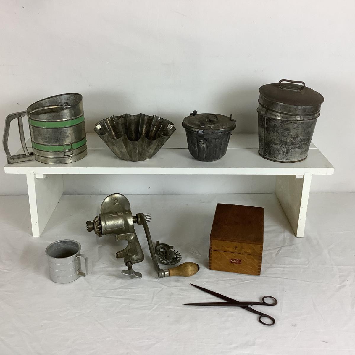 Lot. 6109  Antique German & French Molds, Vintage Hand Meat Grinder, Sifter and more