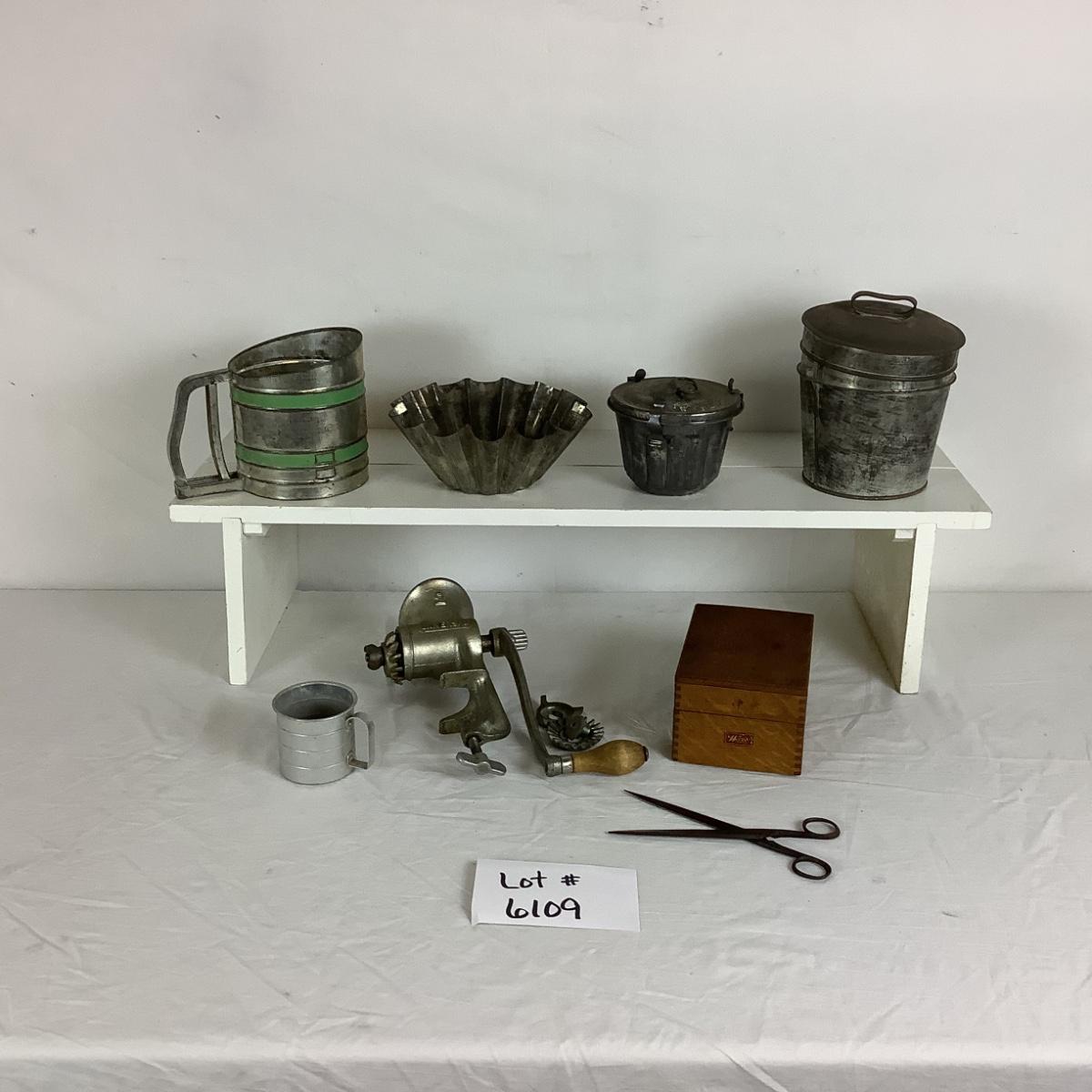 Lot. 6109 Antique German & French Molds, Vintage Hand Meat Grinder, Sifter and more