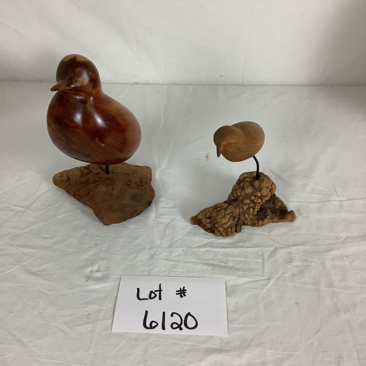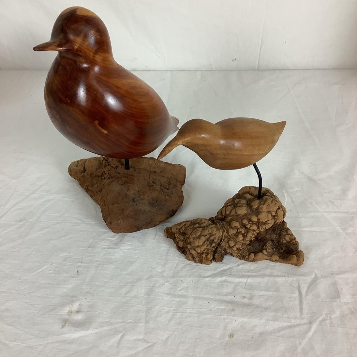 Carved Birds by Earl M. Brinton one in Cedar, one in Dogwood