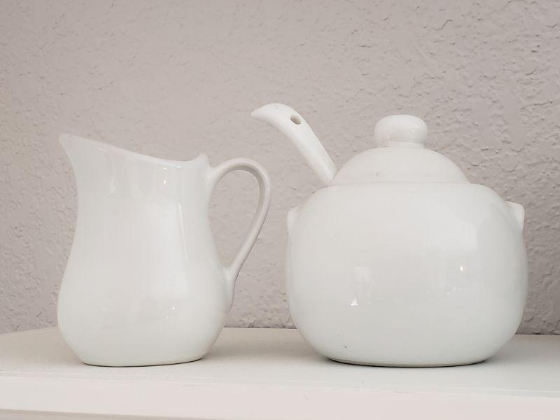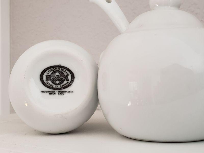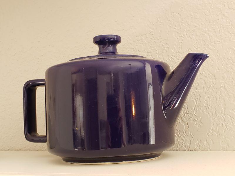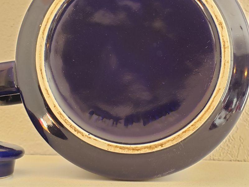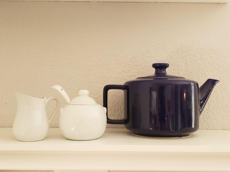 Lot 614: Blue Tea/Coffee Pot, White Creamer and Sugar