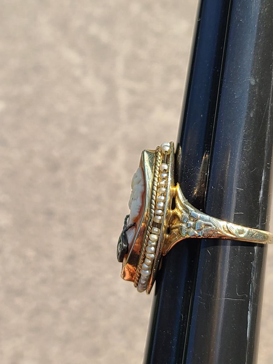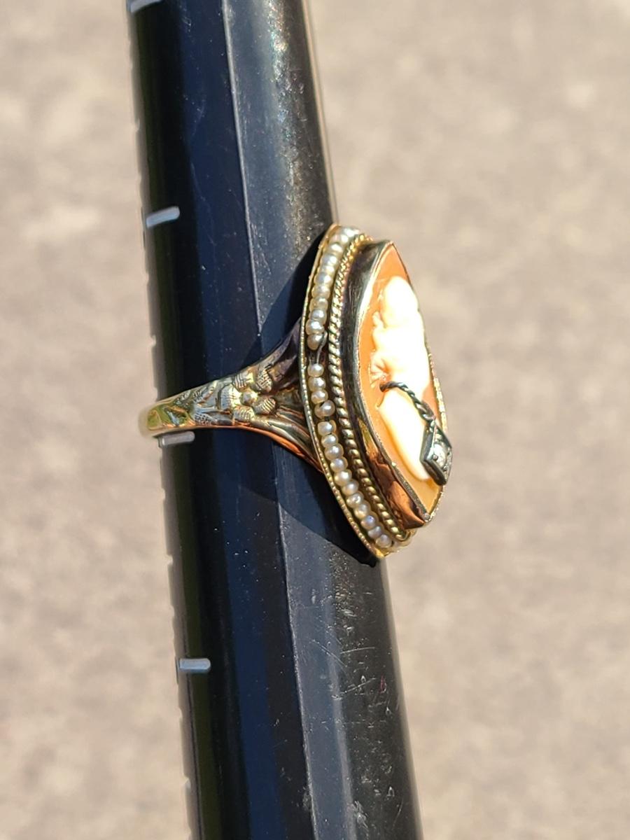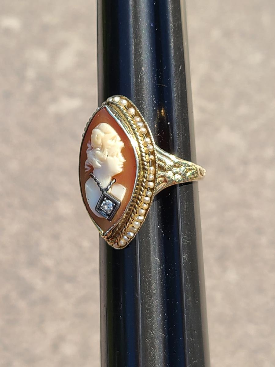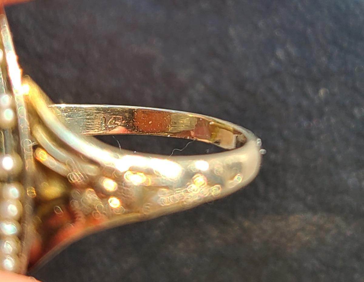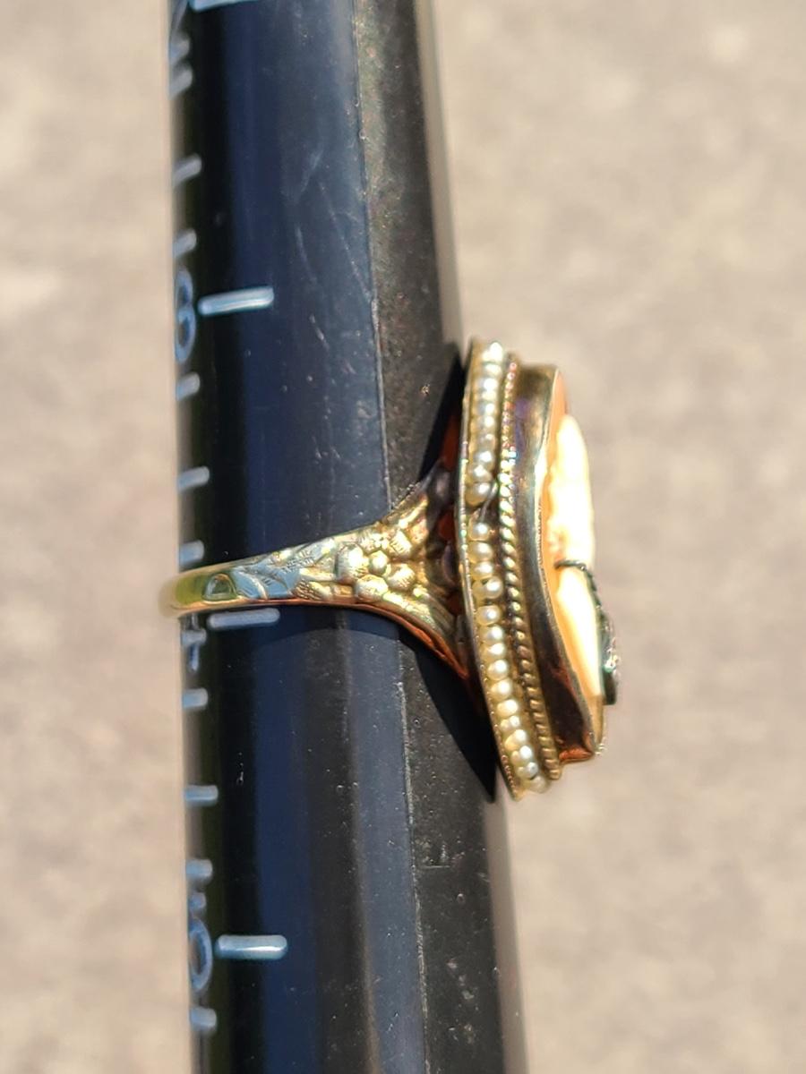 Lot J18: Vintage 14K Seed Bead Pearl Cameo Ring