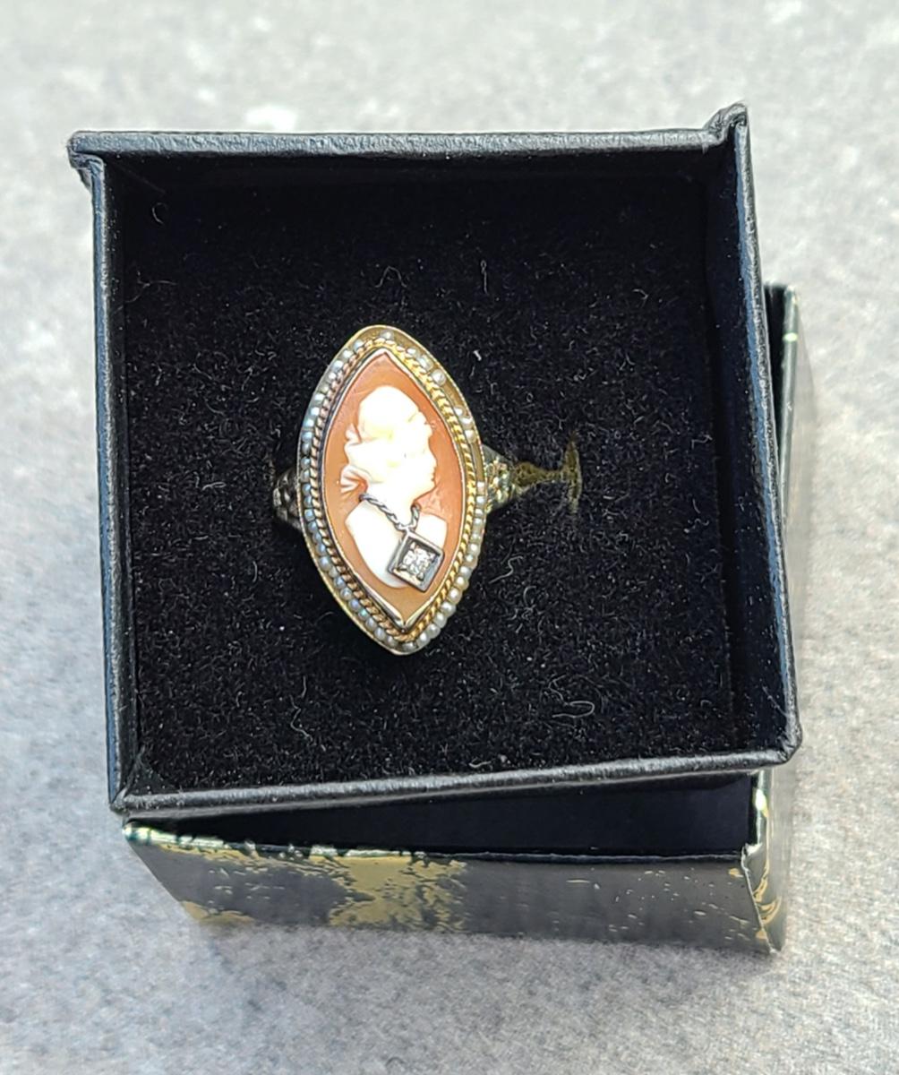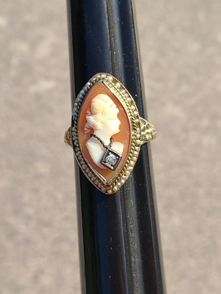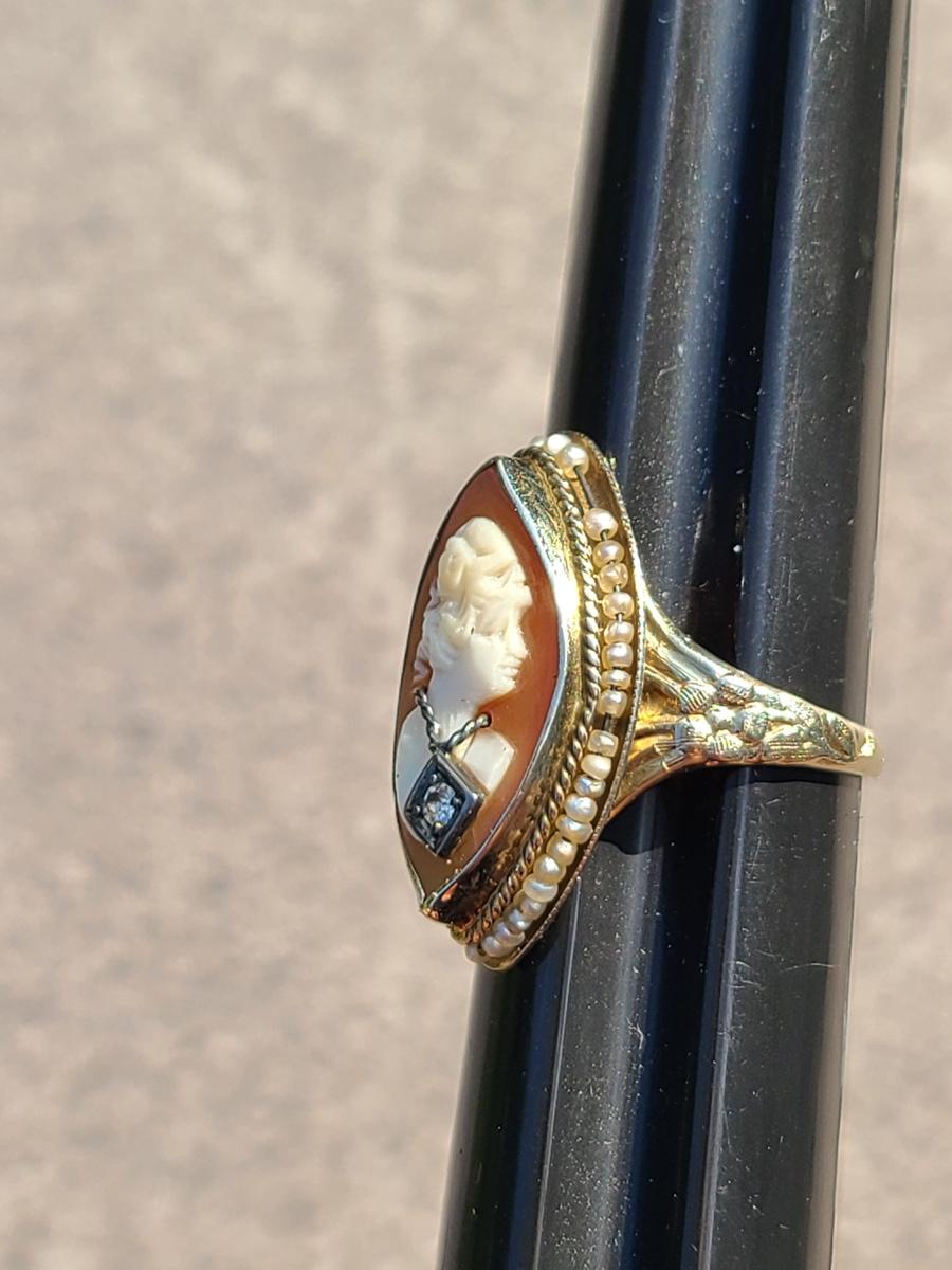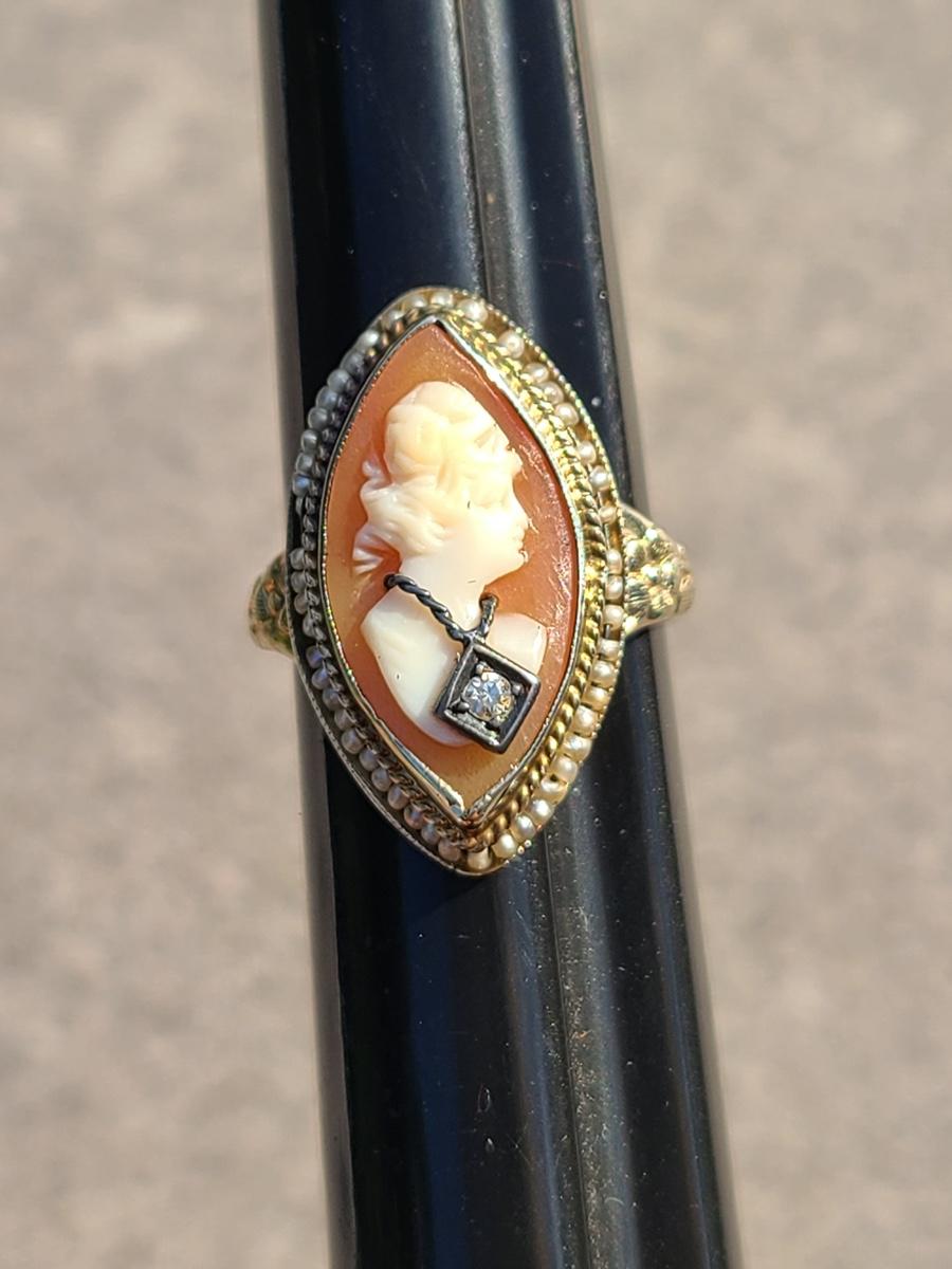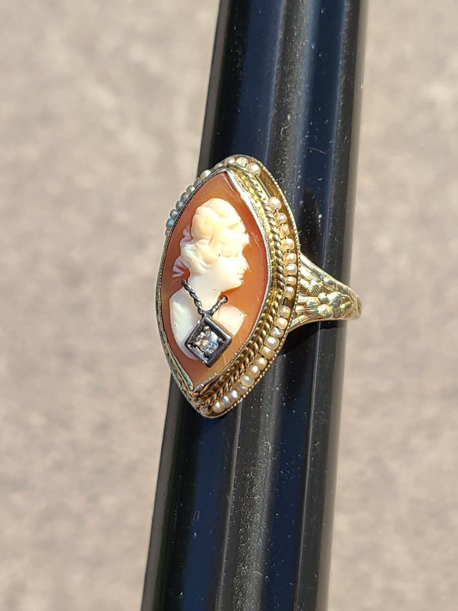 Lot J18: Vintage 14K Seed Bead Pearl Cameo Ring