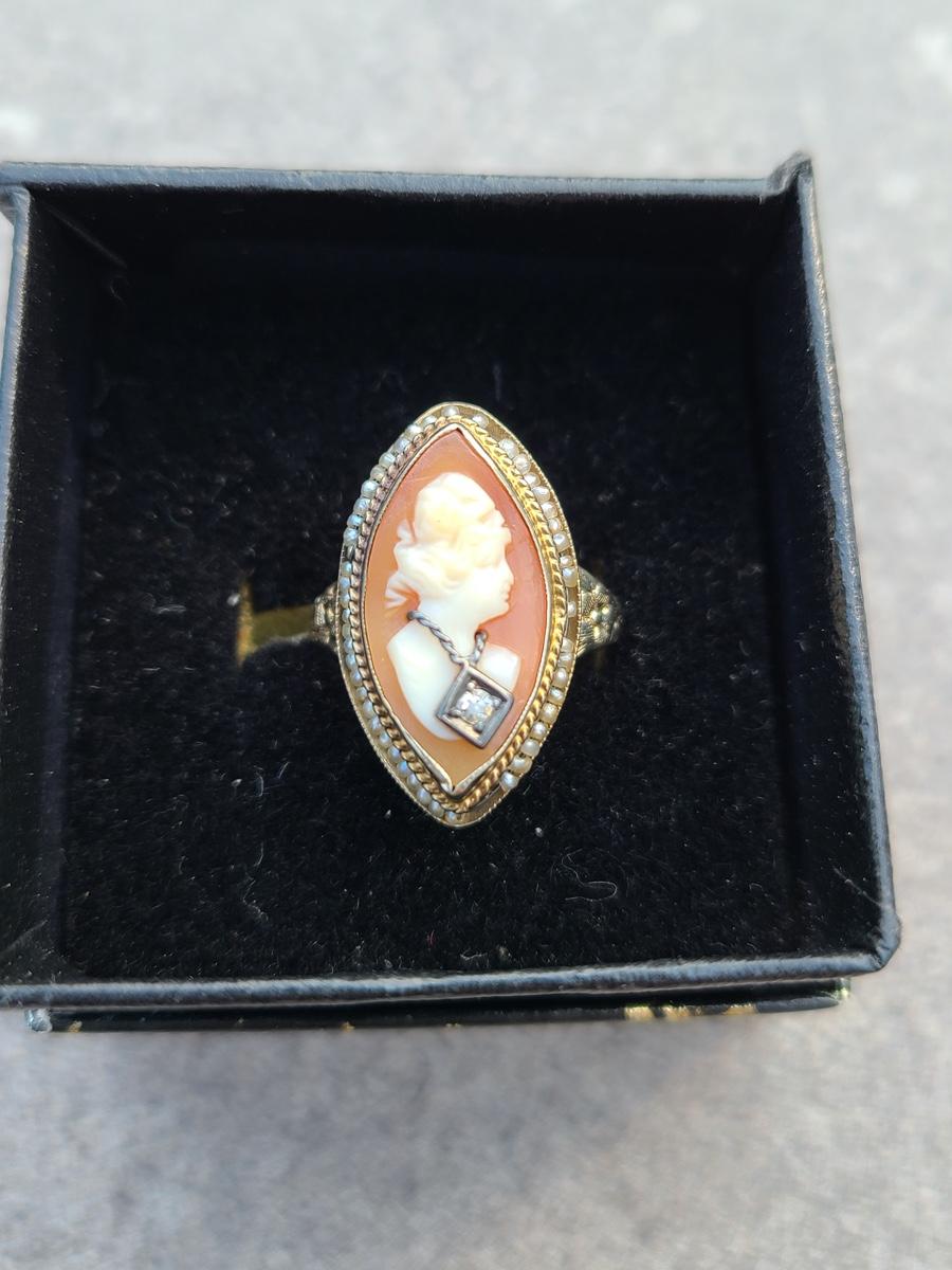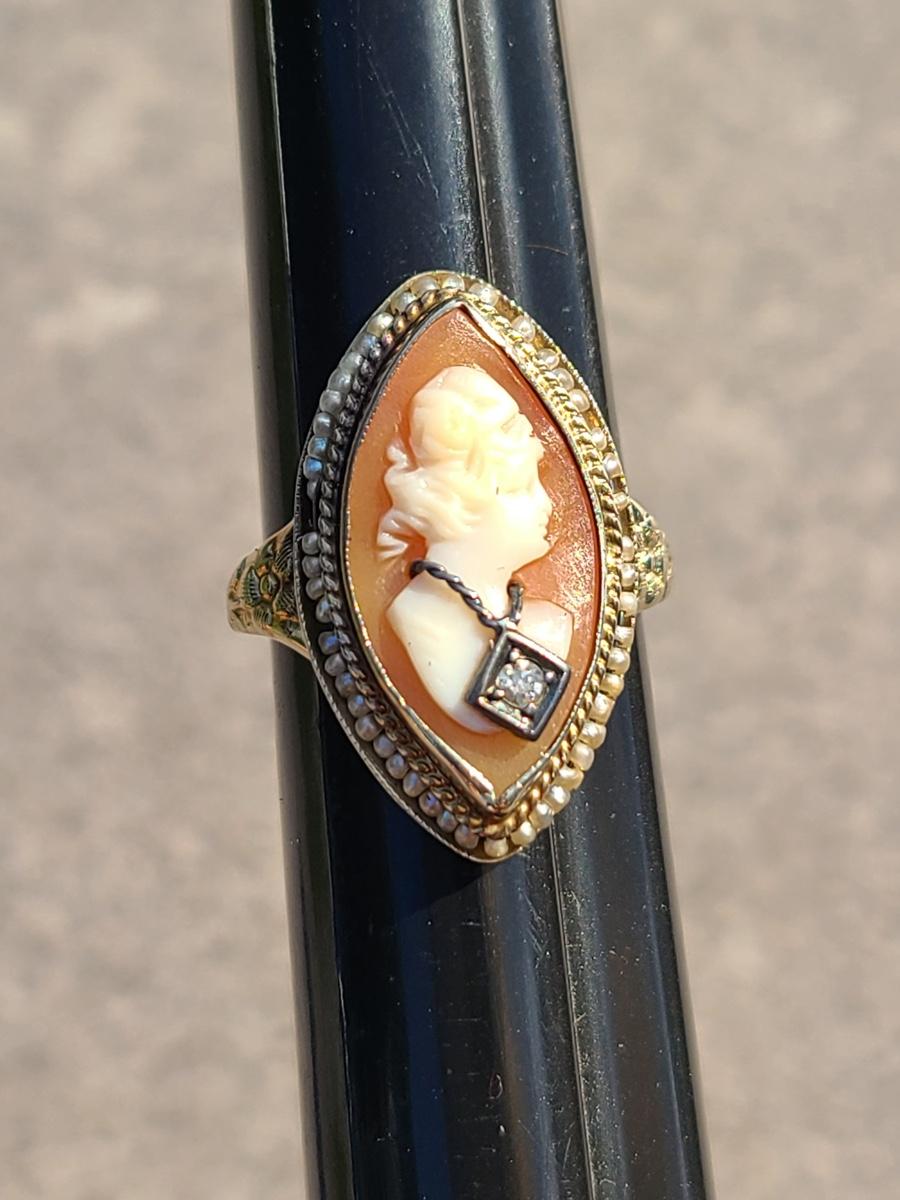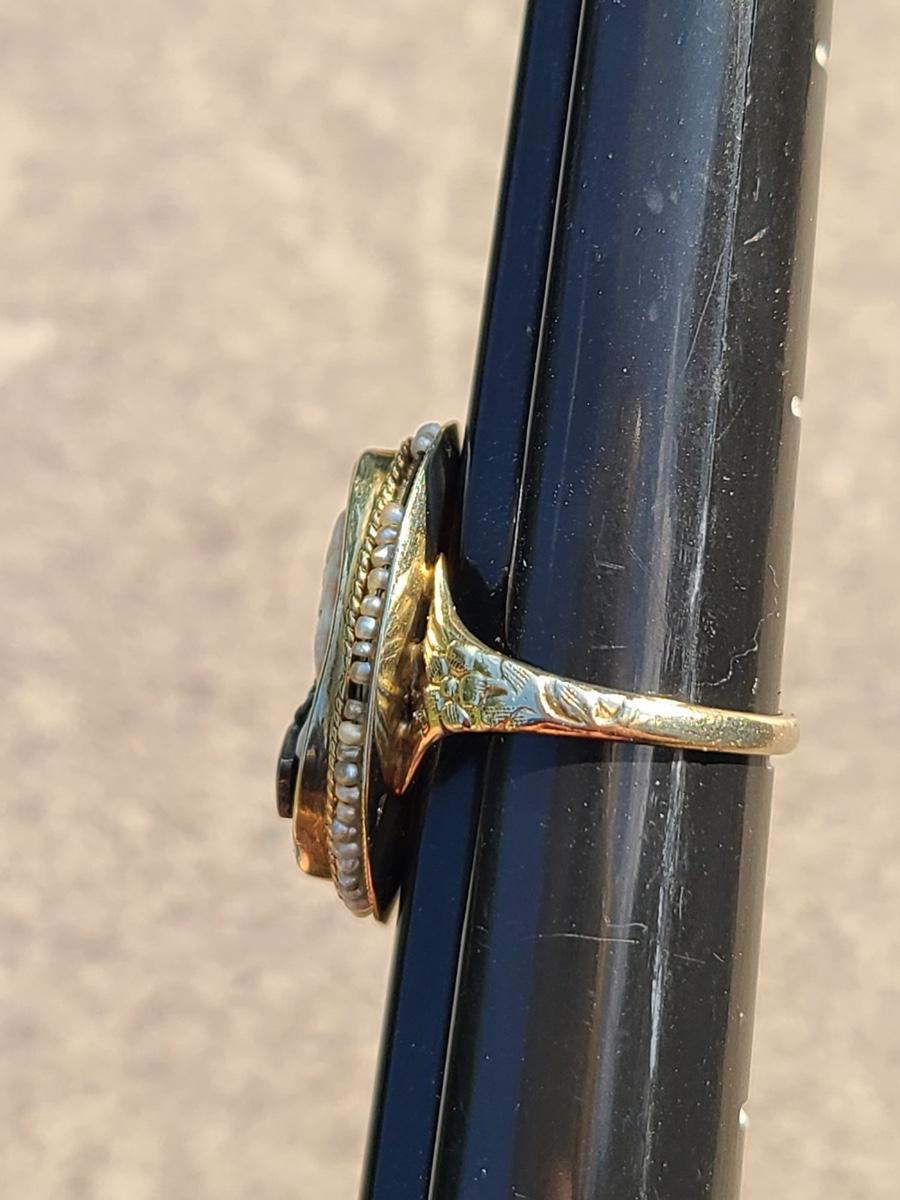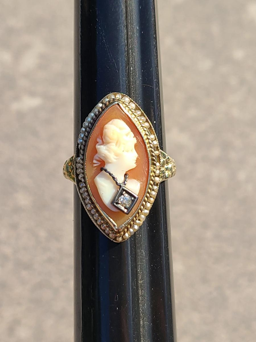 Lot J18: Vintage 14K Seed Bead Pearl Cameo Ring