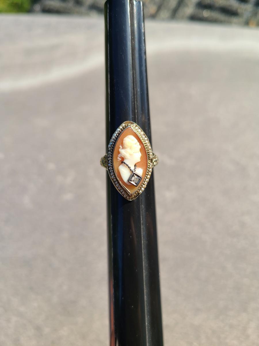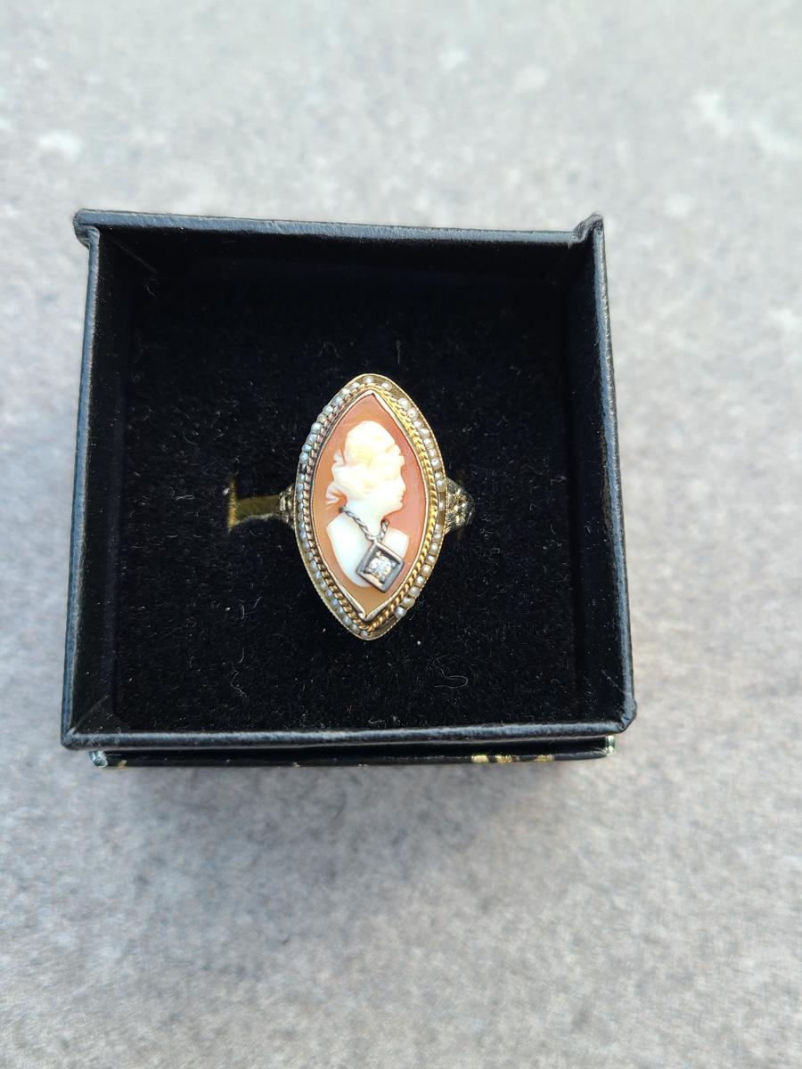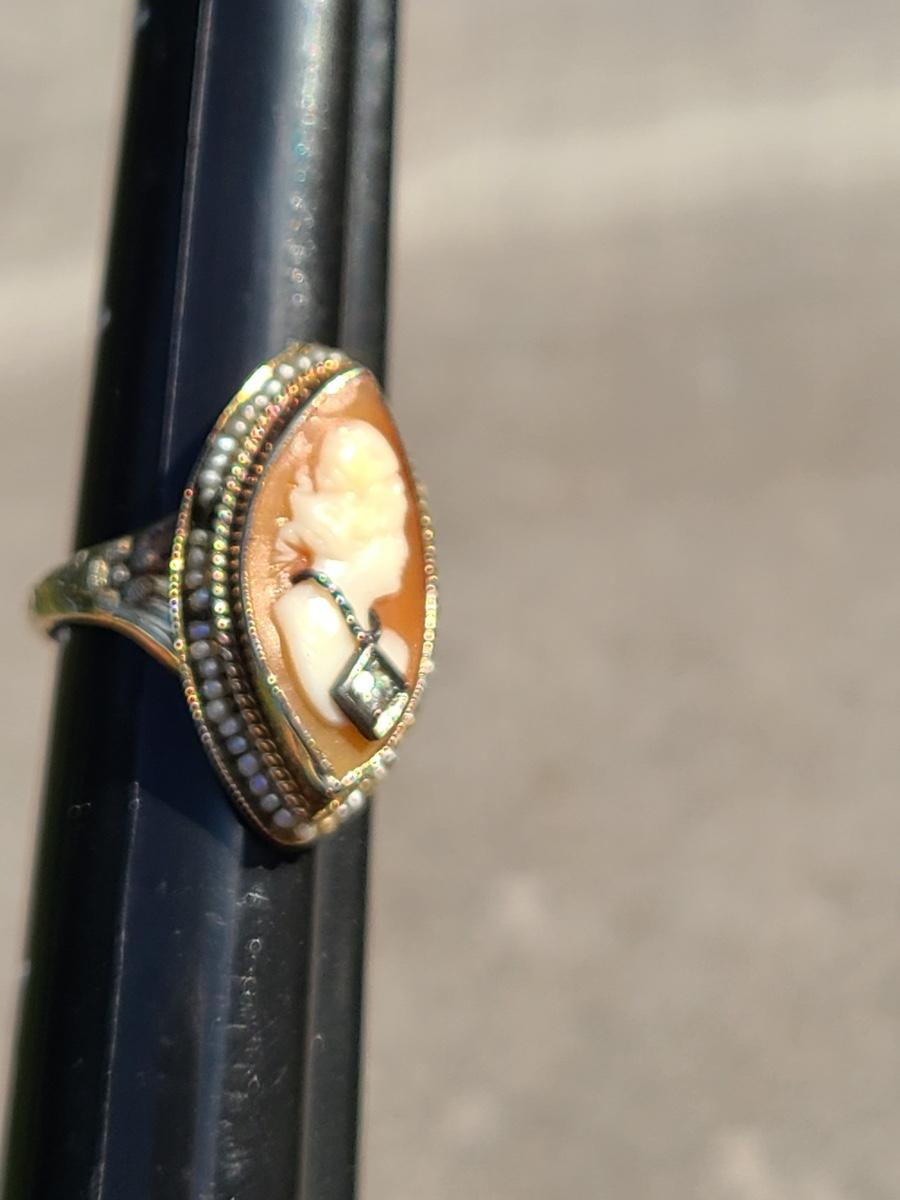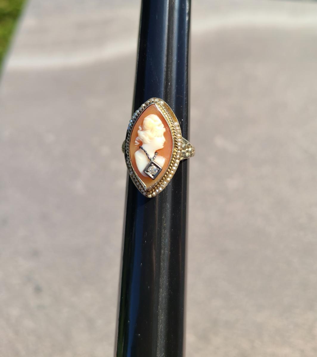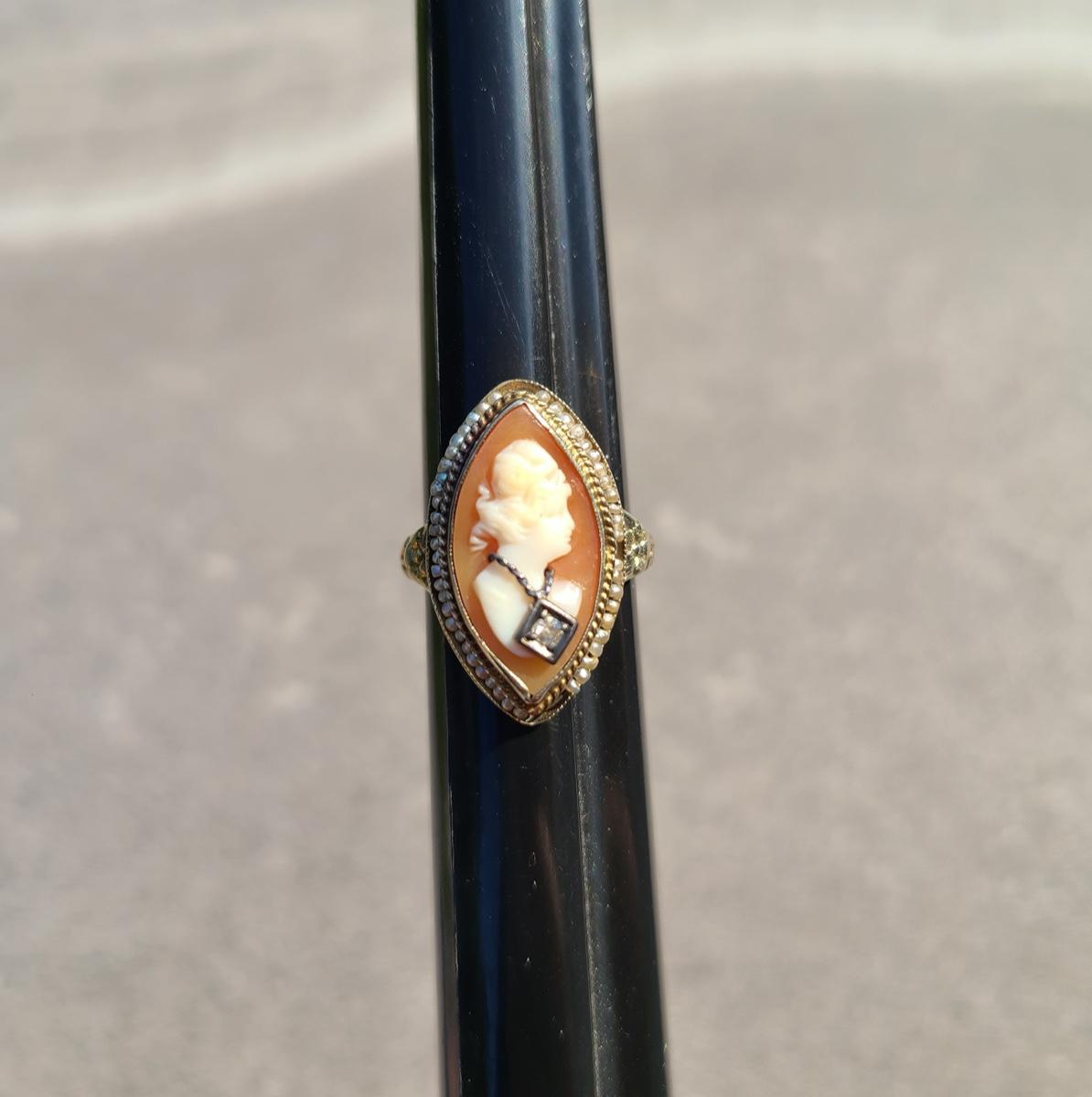 Lot J18: Vintage 14K Seed Bead Pearl Cameo Ring