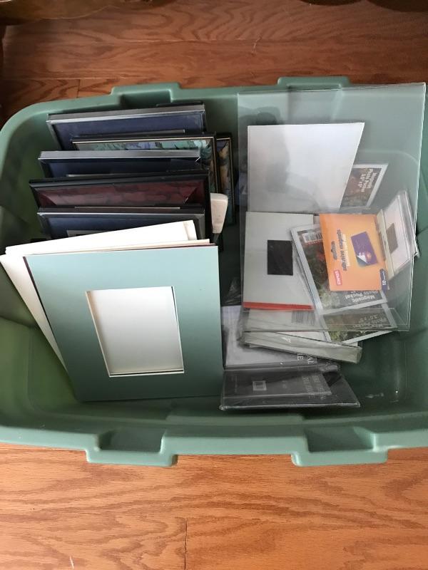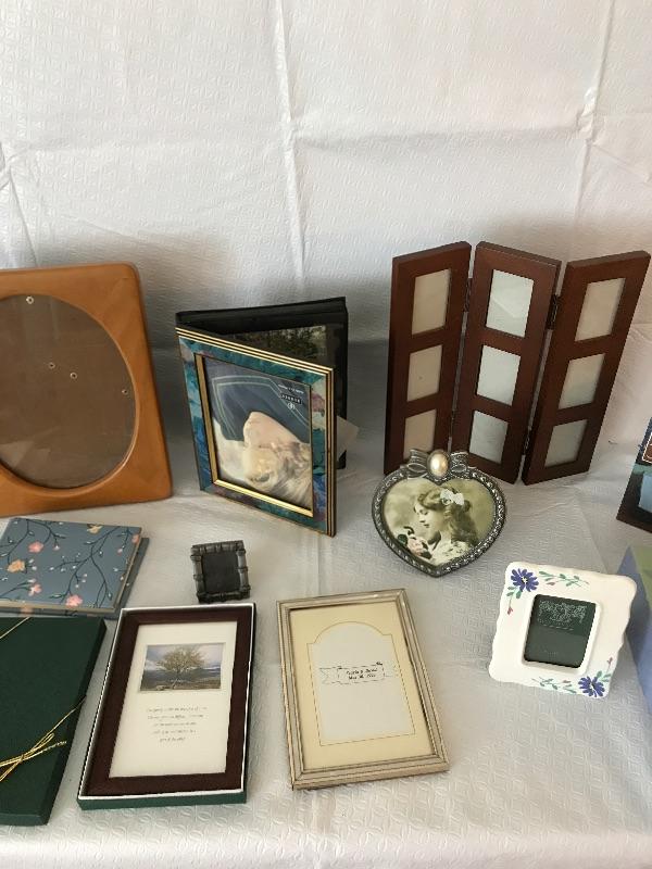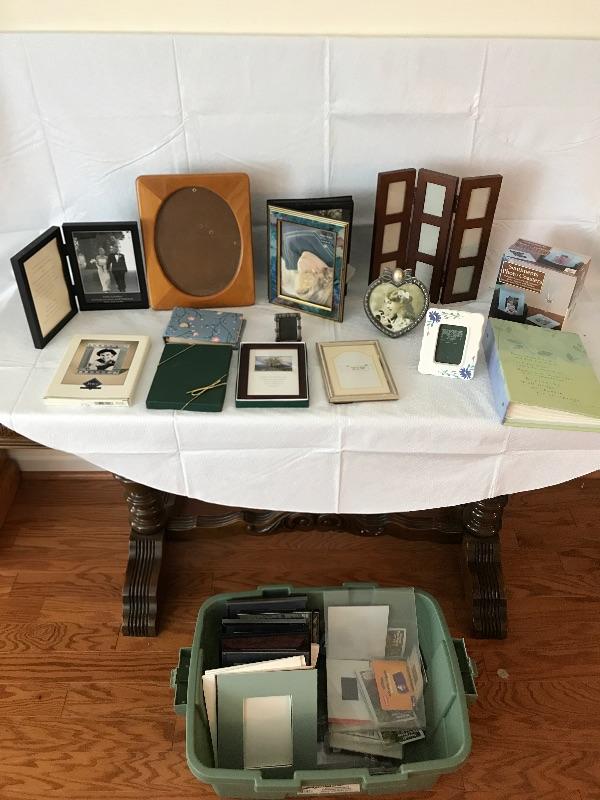 Lot of picture frames, photo albums and photo mats.