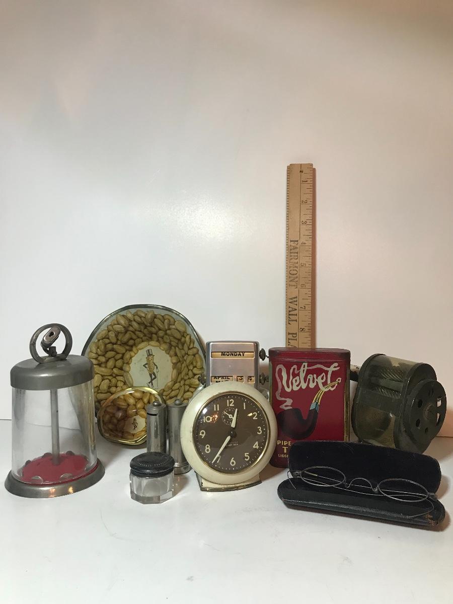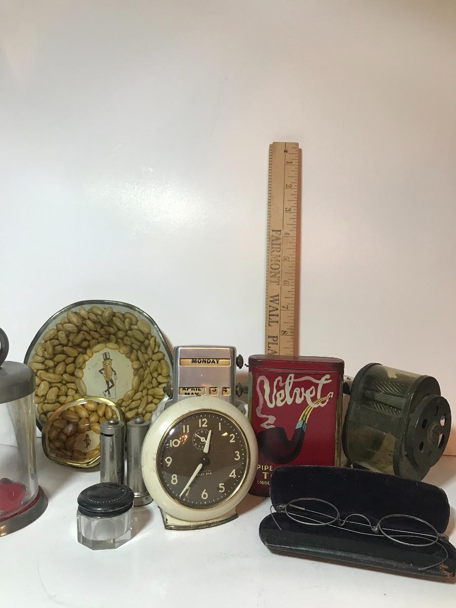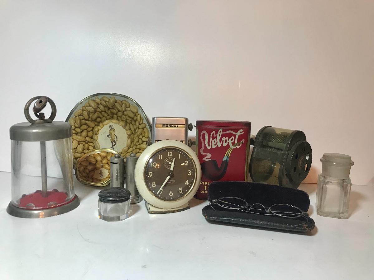 Mr. Peanut serving bowl and snack cups, banks, Little Ben alarm clock, wall/desk mount pencil sharpener, a glass trinket holder with sterling lid, and more. Please see all pictures as they are the best representation of the items. The pictures show condition, measurements if taken, and what is included in the lot. Due to the large amount that we photograph and the time frame, we are not always able to take measurements. All items unless noted, are pre-owned and have been used. If you purchased furniture, you must bring help. We do not allow one person to carry large furniture out on their own. Bring help, tools and a truck for the safety of our client’s homes, and your personal safety. Company policy. Thank you.