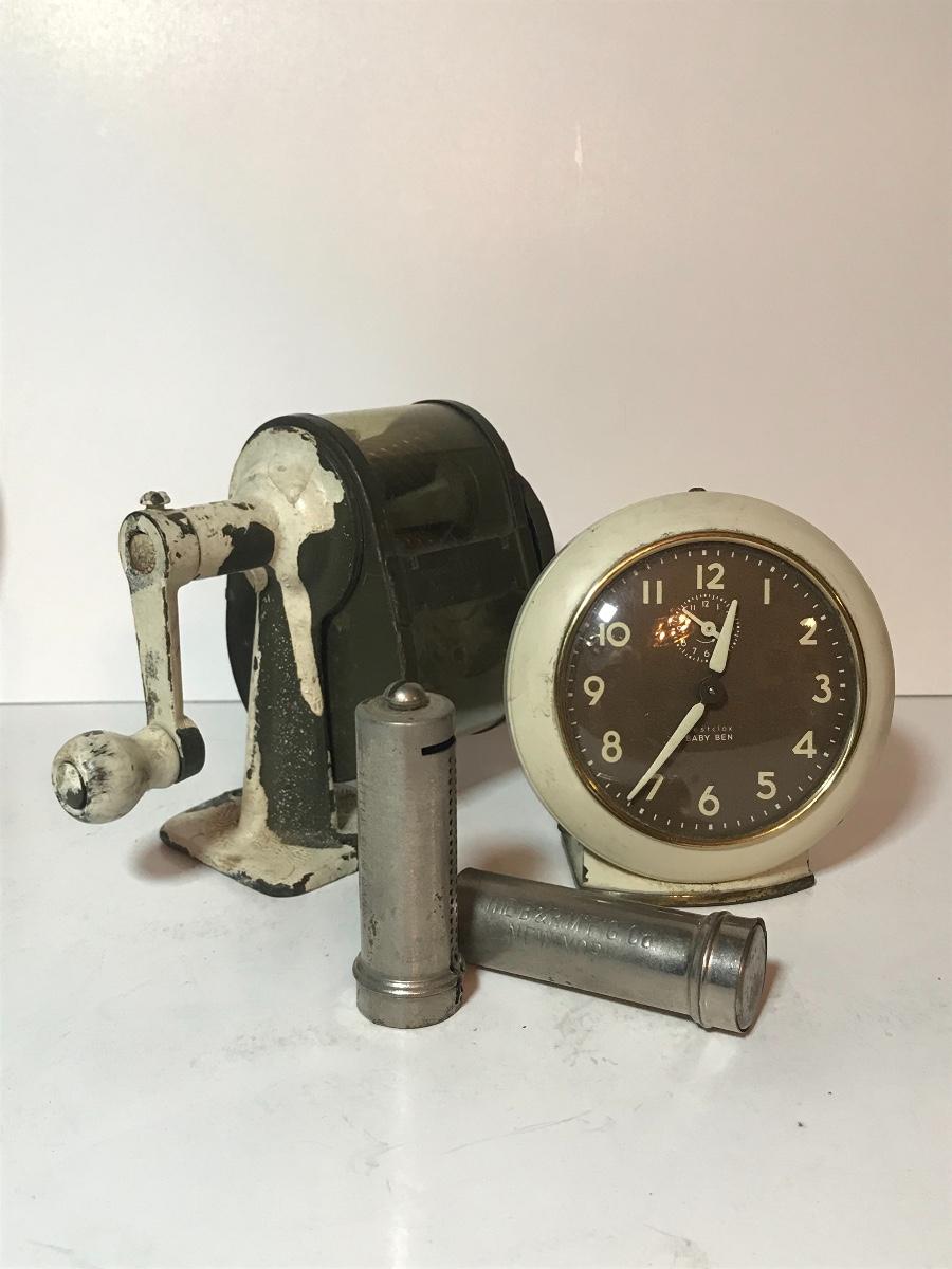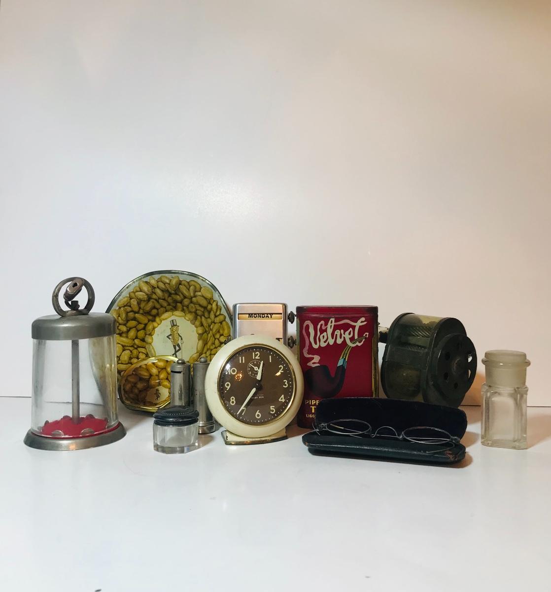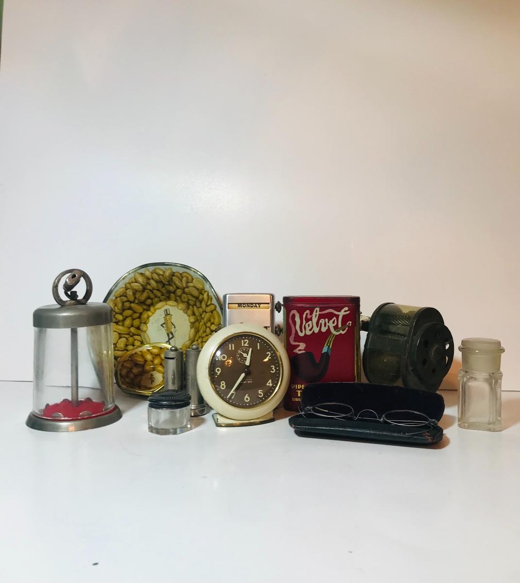 Mr. Peanut serving bowl and snack cups, banks, Little Ben alarm clock, wall/desk mount pencil sharpener, a glass trinket holder with sterling lid, and more. Please see all pictures as they are the best representation of the items. The pictures show condition, measurements if taken, and what is included in the lot. Due to the large amount that we photograph and the time frame, we are not always able to take measurements. All items unless noted, are pre-owned and have been used. If you purchased furniture, you must bring help. We do not allow one person to carry large furniture out on their own. Bring help, tools and a truck for the safety of our client’s homes, and your personal safety. Company policy. Thank you.