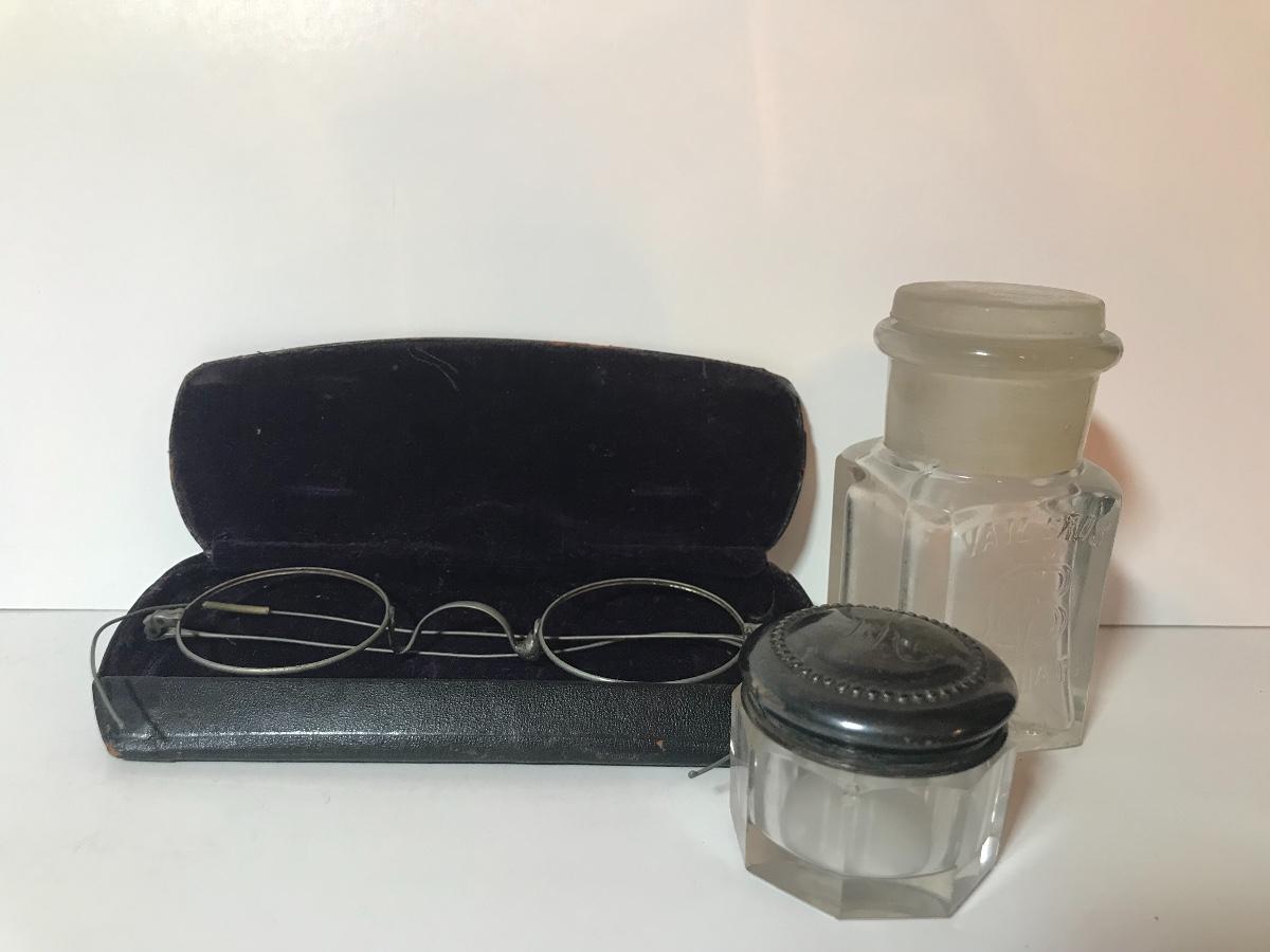 Lot 51:  Vintage Metal/Glass Dome Bank, Glasses, Inkwell and More