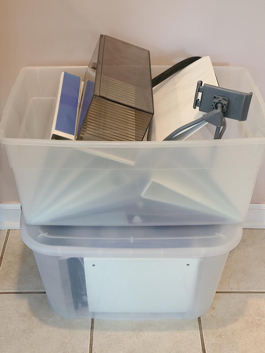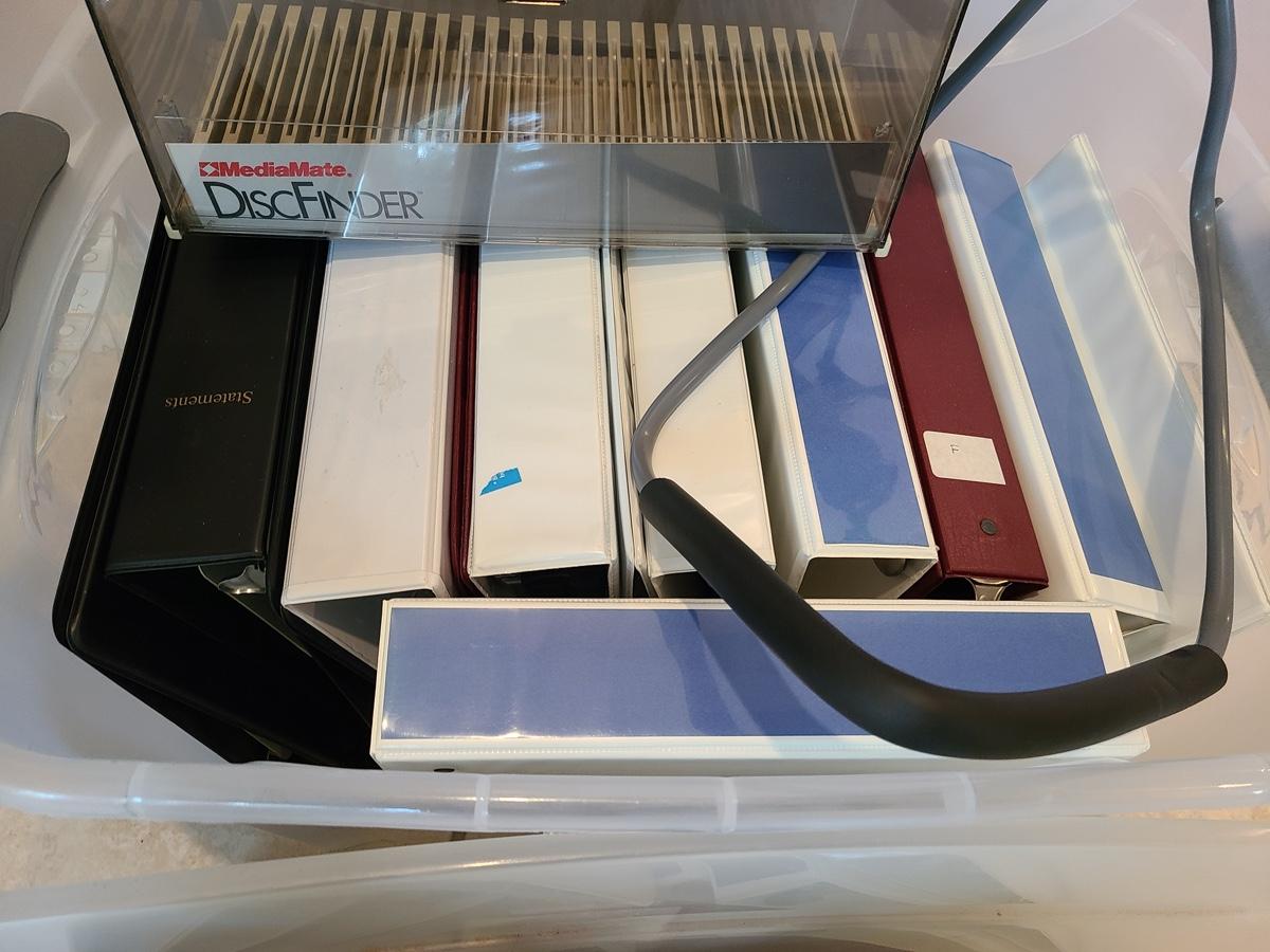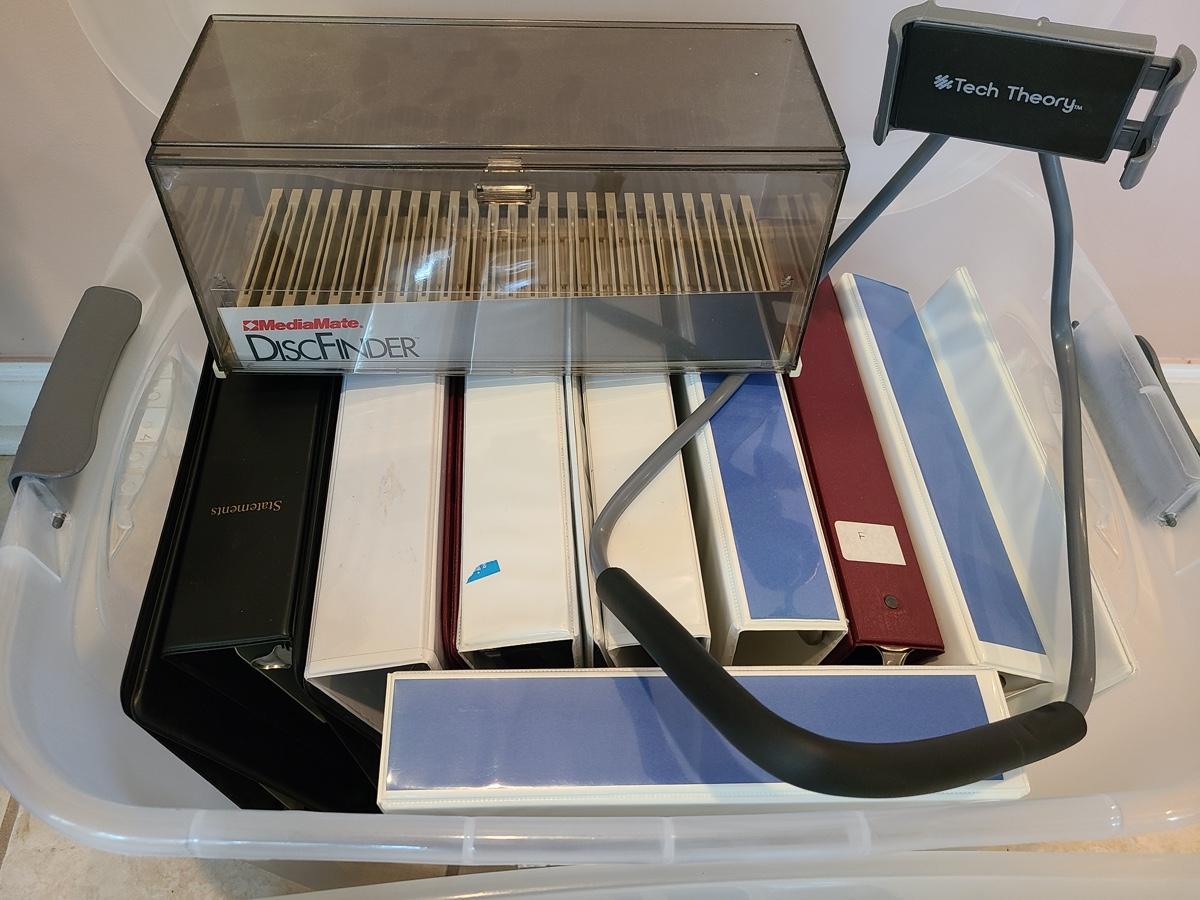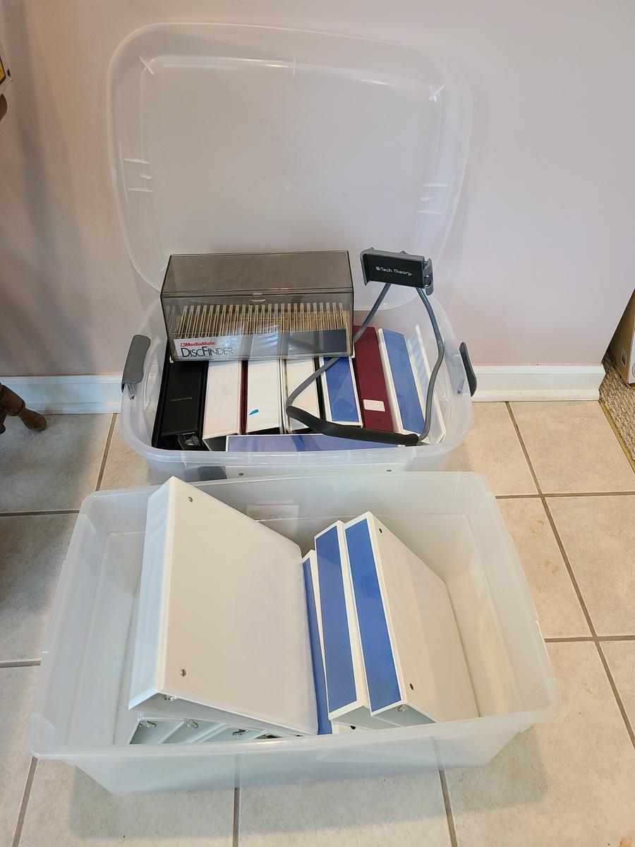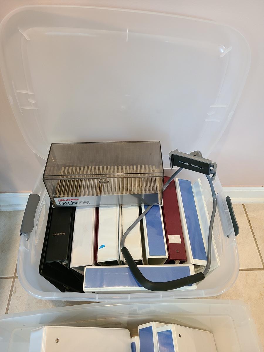 One storage tote with lid, clean 3 ring binders and Disc Storage. Please see all pictures as they are the best representation of the items. The pictures show condition, measurements if taken, and what is included in the lot. Due to the large amount that we photograph and the time frame, we are not always able to take measurements. All items unless noted, are pre-owned and have been used. If you purchased furniture, you must bring help. We do not allow one person to carry large furniture out on their own. Bring help, tools and a truck for the safety of our client’s homes, and your personal safety. Company policy. Thank you. There are a lot of collectibles and small items at this sale, please bring boxes and packing materials.