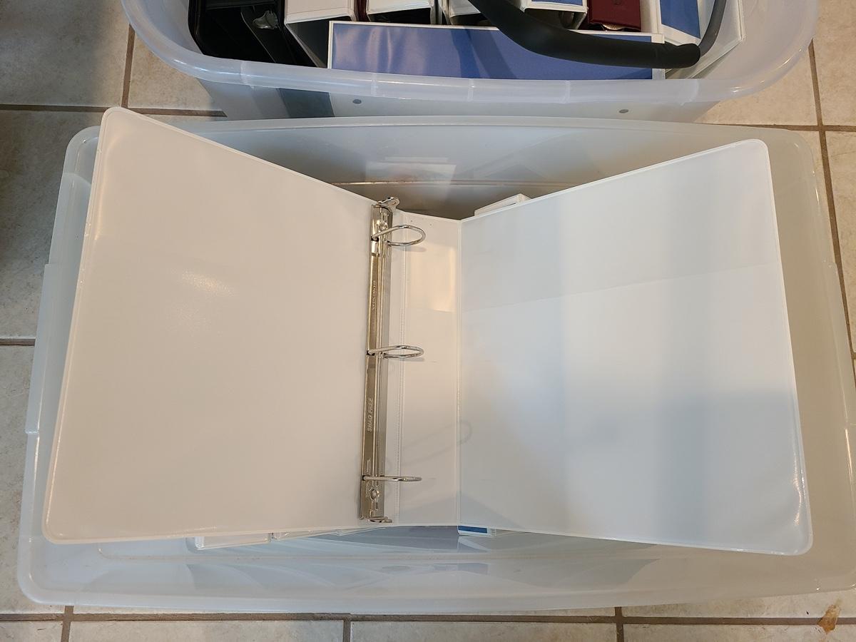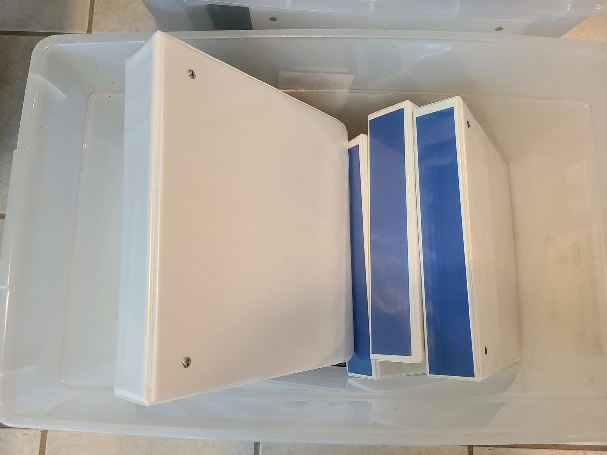 Lot 12: 3 Ring Binders, Storage Tote and More